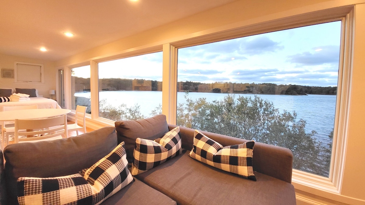 Teach suaimhneach ar imeall an uisce, deic mhór, 4 sheomra leapa