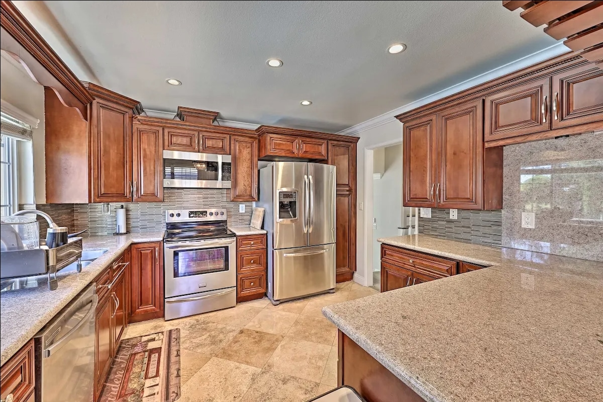 Tá an áit ghalánta seo le fanacht foirfe do gach duine ar breá leo timpeallacht chiúin shíochánta. Tá áit chónaithe 2899 sf sa teach ar bheart 0.46 acra. Tá 5 sheomra leapa agus trí sheomra folctha ann. Tá linn snámha phríobháideach fhálaithe le clár tumadóireachta sa chúlchlós ar fáil duit. Tá sé go hiontach le haghaidh fanacht gearrthéarmach nó fadtéarmach le haghaidh saoire ghnó agus teaghlaigh.