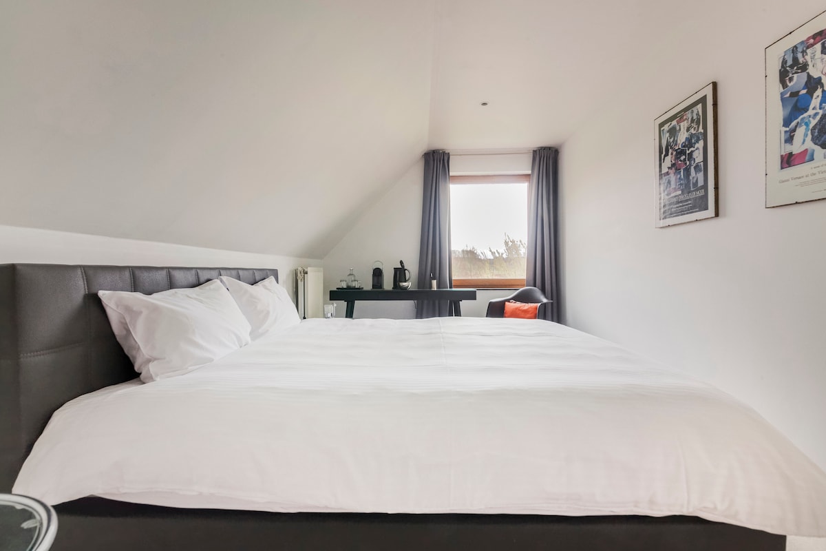 Fáilte chuig ár bhfolach síochánta in aice leis an mBruiséil - tearmann galánta do suas le 6 aoi. Frámaithe de réir an dúlra agus deartha le teagmháil bheachtaithe, íostach, is é do spás é chun scíth a ligean, ceangal a dhéanamh agus a bheith ar do shuaimhneas. Foirfe do dheireadh seachtaine rómánsúil nó do chruinnithe ciúine. Cibé acu nóiméad speisialta a mharcáil nó análóir a bheith ag teastáil uait, gheobhaidh tú suaimhneas, solas agus teas anseo. Tóg snámh sa linn snámha éigríche, análaigh sa tsuaimhneas, agus lig don dearadh glan agus don áilleacht nádúrtha cuireadh a thabhairt duit moilliú síos agus díreach a bheith.