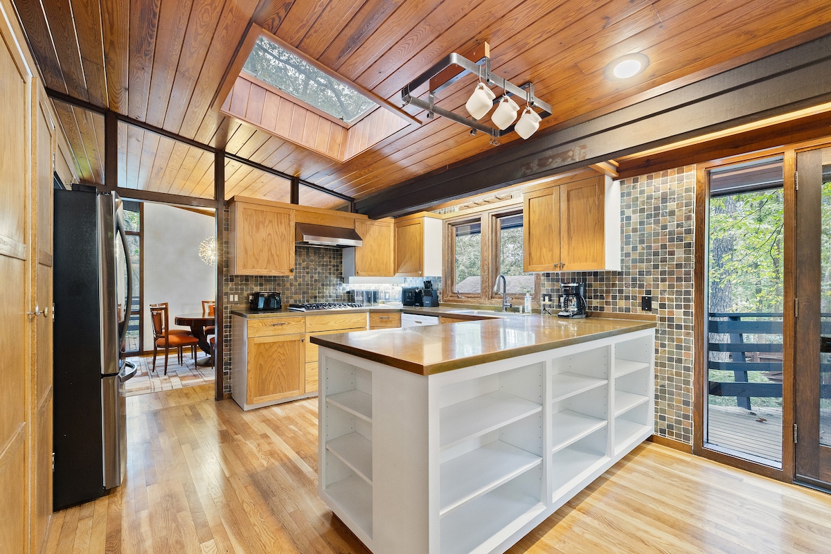Cuirfidh an seoid nua-stílithe seo ó lár an chéid i Chapel Hill iontas ort! Tá linn snámha phríobháideach, síleálacha boghta agus radhairc mhéith choillteacha inár dteach fairsing 4 sheomra leapa. Le go leor áiteanna maireachtála agus saoráidí sómasacha amhail cith gail, is é an tearmann príobháideach foirfe é do theaghlaigh agus do ghrúpaí. Faigh áilleacht ailtireachta agus compord nua-aimseartha cúpla nóiméad ó UNC agus ó chosáin áitiúla, agus freastal go compordach ar do ghrúpa iomlán. **Tabhair faoi deara: Ní mór duit a bheith 25 bliana d'aois nó níos sine chun an réadmhaoin seo a chur in áirithe.**