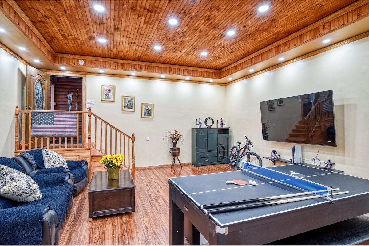 Bain sult as compord cábáin logála iontach atá suite ar shé acra phríobháideacha i nGleann Hudson! Agus é feistithe le déanaí, tá seomraí suí iomadúla, sorn dóite adhmaid laistigh, sabhna, tábla linn snámha, seomra amharclainne, lochán mór príobháideach le duga, poll dóiteáin, agus go leor eile sa teach 4 sheomra leapa seo! Beidh tú nóiméad ar shiúl ó bhialanna, fíonlanna, grúdlanna, agus gníomhaíochtaí do gach ball de do ghrúpa. In aice le go leor cosáin, Greenwood Lake, agus Mount Peter. Saoire fhoirfe le haghaidh sciála freisin. Tar éalú agus scíth a ligean!