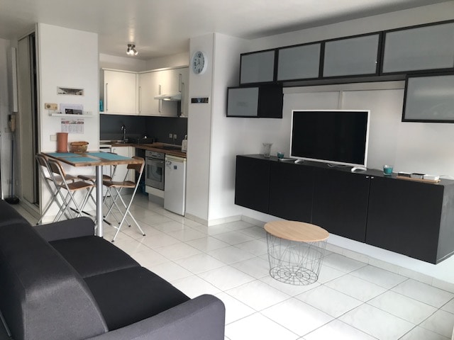 Stiúideo athchóirithe 5 nóiméad ó staidiam Velodrome i bhfoirgneamh atá suite ar chúl clós ciúin. Seomra suí feidhmiúil álainn ina bhfuil BZ, vardrús, bord agus 2 chathaoir agus an chistin oscailte. Sa seomra folctha gheobhaidh tú an cithfholcadán , an stóráil agus an vanity agus leithreas. Tá meaisín níocháin/triomadóir ar fáil ag an mbealach isteach sa stiúideo. Aerchóiriú inchúlaithe. Níl teilifís ná Wi - Fi ar fáil. Línéadach leapa, tuáillí folctha, glóthach chithfholcadáin curtha ar fáil