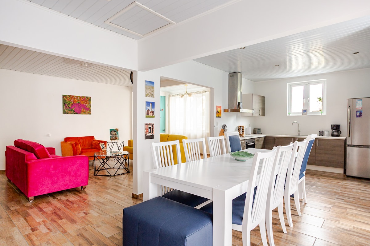 Fáilte go dtí ár dteach álainn 3 sheomra leapa, 2 sheomra folctha in Palm Beach, Aruba! Foirfe do suas le 6 aoi, tá linn snámha agus beárbaiciú ollmhór lasmuigh inár dteach, atá oiriúnach do scíth a ligean agus siamsaíocht a chur ar fáil. Lonnaithe i gcomharsanacht chiúin, níl ann ach siúlóid ghearr ó cheantar an óstáin ard - ardú agus níl sé ach nóiméad ar shiúl ó Thránna iontacha Arashi agus Eagle. Bain sult as an gcuid is fearr de thránna agus siamsaíocht oíche Aruba, ansin téigh ar do shuaimhneas le haghaidh oíche shuaimhneach. Déan áirithint anois le haghaidh saoire speisialta shuaimhneach!