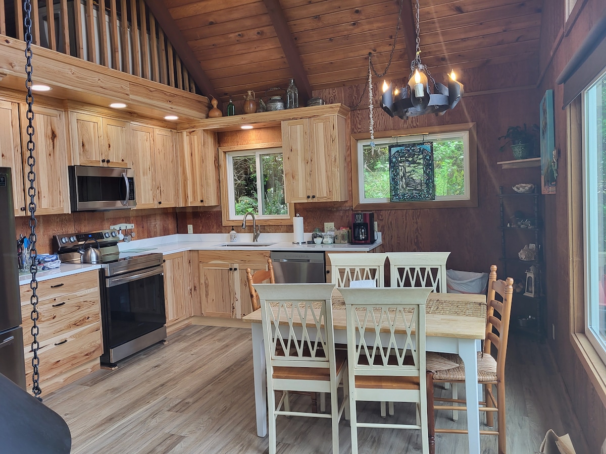 Déanann an plean urláir oscailte fairsing agus an tsíleáil bhoghtach, a dhear an t - ailtire Dennis Norman, an áit seo de chineál ar bith! Agus tú ag críochantacht leis an bhforaois ag deireadh an bhóthair tá tú in ósais chúlráideach atá suite ag barr an chnoic os cionn Manzanita. Le spéirléasanna, cistin iontach, sorn mór adhmaid, agus lochta teolaí seomra leapa, clois an surfáil i bhfad i gcéin agus an bháisteach ar an díon agus tú ag dúiseacht nó ag dozeáil . Ach níl ach nóiméad ar shiúl ó Manzanita agus ón trá.