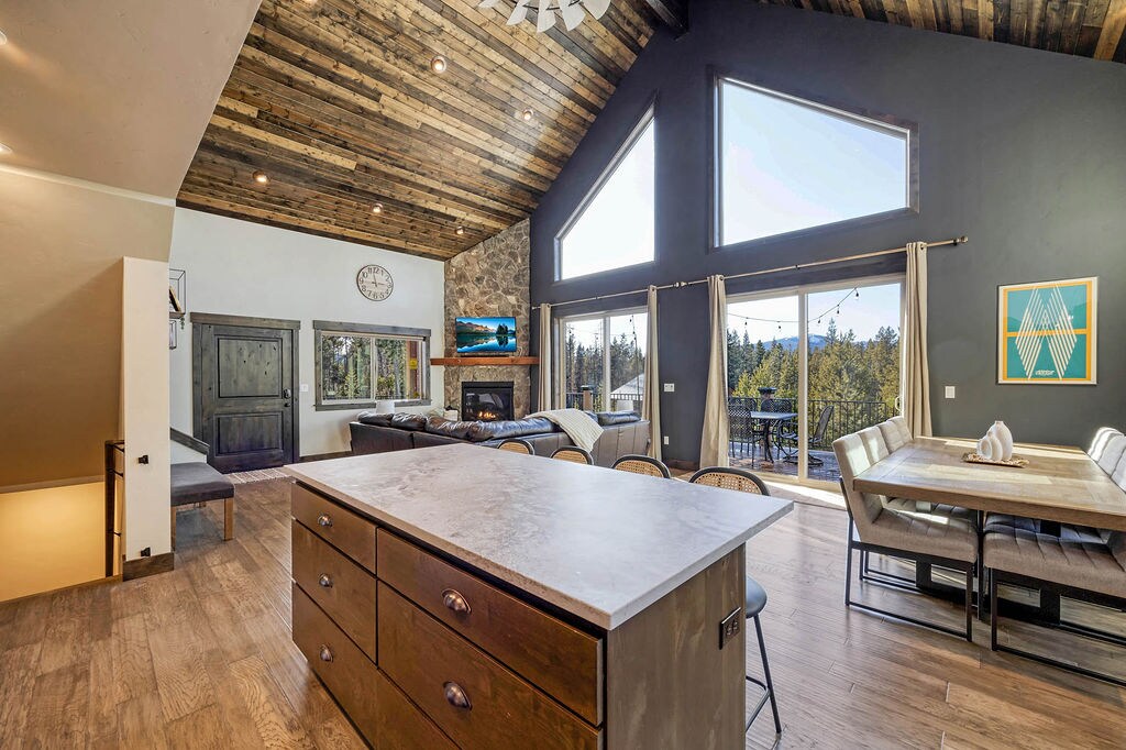 Lig do scíth agus bain sult as aer briosc sléibhe i seclusion álainn adhmaid le fuinneoga móra ardeaglaise, deic fillte, Seomra Mór boghtaí agus sorn cluthar adhmaid chun do bharraicíní a théamh. Téigh síos go dtí an seomra cluiche agus shoot linn snámha, seinn pianó, sip fíon agus gabh scannán ar tholg/recliner leathair fillte. Téigh in aice láimhe chuig sciáil🎿, siúlóid, rothar🚴, dreapadh🧗♂️, iasc🎣, cadhc, agus galf⛳️ + ióga iargúlta saor in aisce🧘 le linn d'fhanachta. Críochnaigh do lá trí na cosa traochta sin a chur ar maos i dtobán te faoi na réaltaí ✨ agus déan arís é de réir mar is gá.