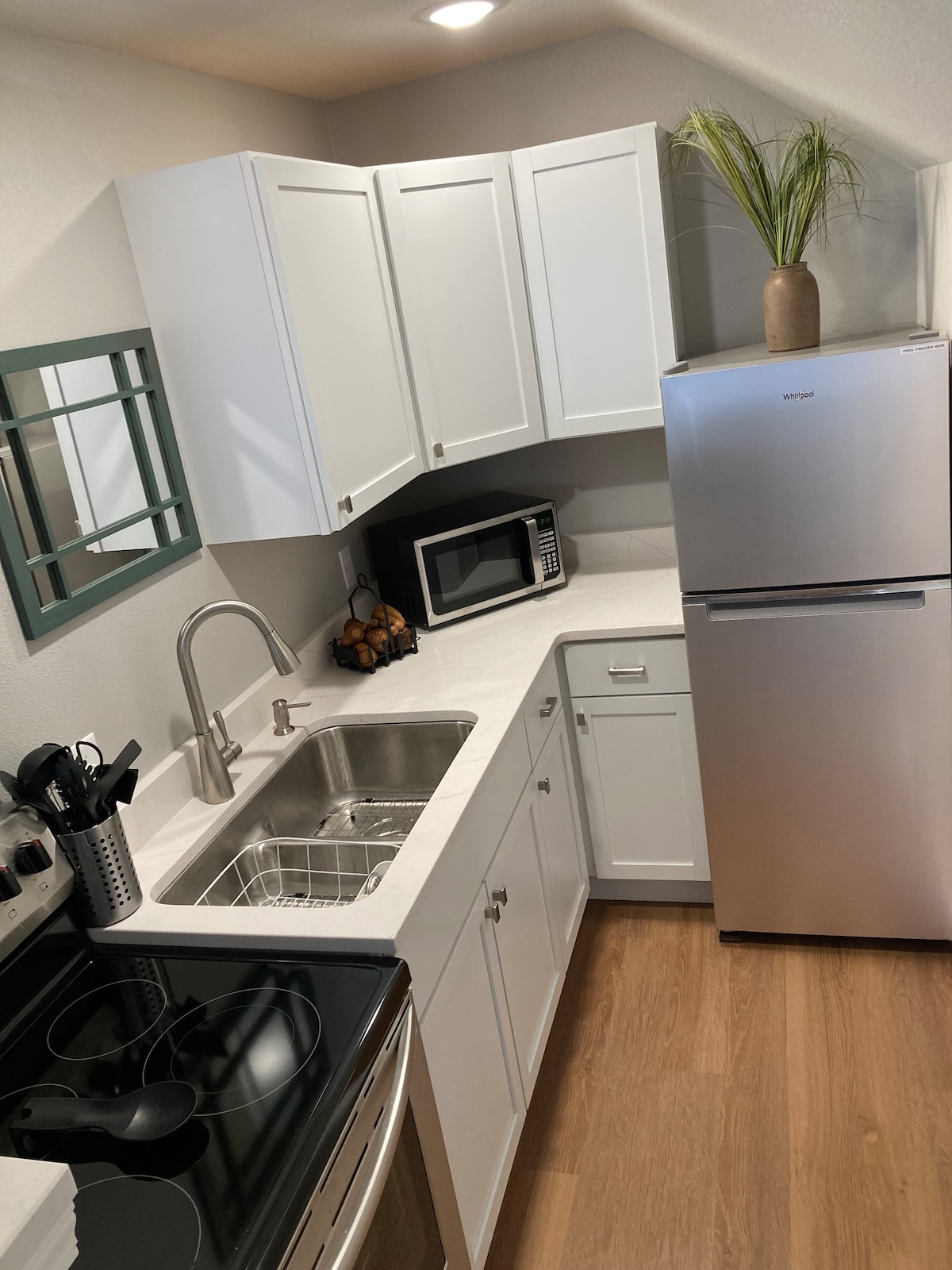 Árasán stiúideo nua - thógtha os cionn ár ngaráiste. Taobh istigh socair, teolaí grianmhar i suíomh ciúin comharsanachta. Ní raibh cónaí orainn ach in Fairmont tamall gairid agus is breá linn é! Tá sé ina "Hallmark" baile bhraitheann. Is féidir leat bualadh lenár Labradoodle sa chúlchlós - tá sí an - chairdiúil agus beidh sí ag iarraidh a rá Hi. Táimid ag tnúth le tú a óstáil sa chathair seo de 5 Loch! Táille ghlantacháin san áireamh sa ráta in aghaidh na hoíche.