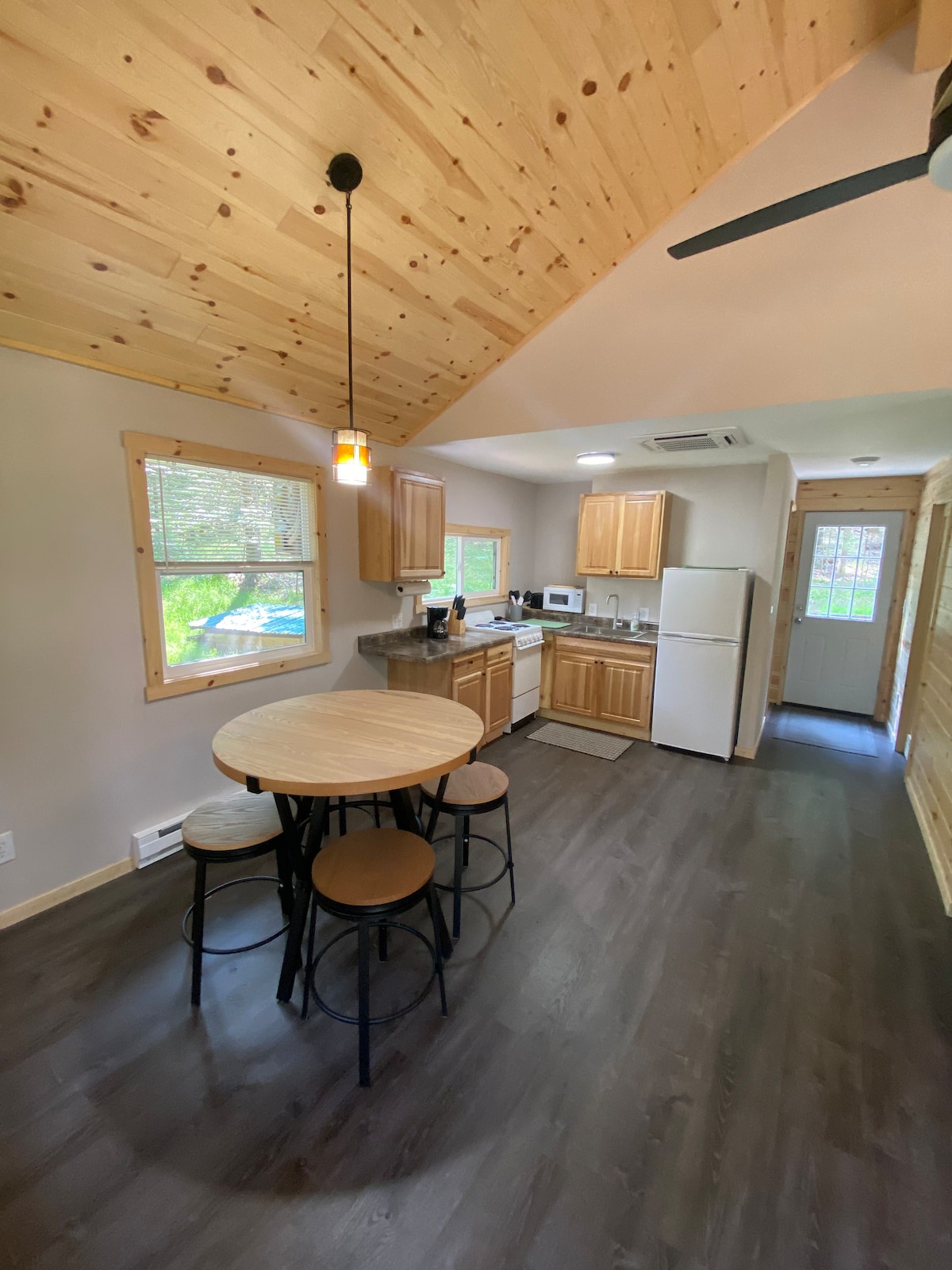Bain sult as an gcábán teolaí seo i gceantar Foraoise Náisiúnta Huron. Suite trasna an bhóthair ón AuSable Abhainn álainn! Abhainn iontach le haghaidh cadhcála (4 san áireamh), Curachóireacht (1 san áireamh) agus iascaireacht breac cáiliúil. Tar agus bain sult as na cosáin áitiúla go léir le haghaidh FÁNAÍOCHTA, ROTHAIR SALACHAIR, ATV'S agus SNOWMOBILING! Nó díreach suí agus do scíth a ligean timpeall ar thine champa! Tá an cábán feistithe go hiomlán le gach éadaí leapa, tuáillí, éadaí soithí srl. agus cistin agus gríoscán gáis lánfheistithe. Tá cluichí amuigh faoin aer agus faoi dhíon ann. DVD agus scannáin