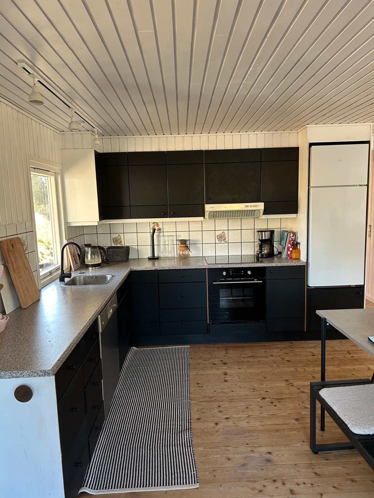 Lig do scíth leis an teaghlach ar fad sa chábán logála seo a léiríonn cóngaracht agus teas le tábla boird darach, binse tionchair, troscán compordach, gan ach 5 km ón gCathair ó dheas agus 9 km ó Aalborg Centrum. Cistin nua sa bhliain 2025😊 Tá an cábán adhmaid i bhfolach go maith ón mbóthar idir na crainn díreach in aice le ceantar Poulstrup Sø. Díreach taobh amuigh den doras tá bealaí fánaíochta marcáilte, agus gar do rianta MTB chomh maith le conairí marcaíochta. Féidearthacht filleadh féir do chapaill laistigh de 1 km. Níl club gailf Ørnhøj ach 8 km ar shiúl agus 20 km chuig Club Gailf Rold Skov.