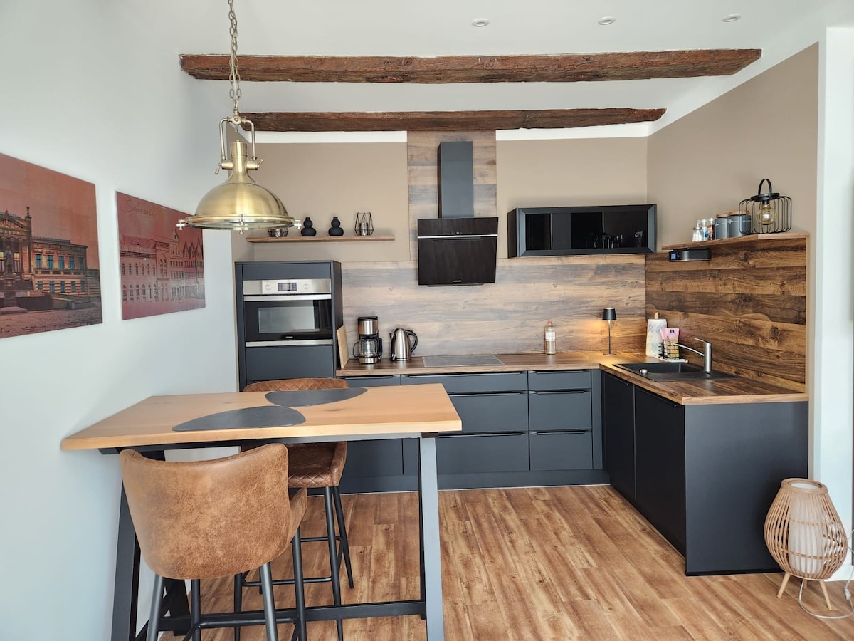 Fáilte go dtí ár dteachín ar an Elbe Dyke! Tógadh ár dteach agus an teach aíochta scoite in 2021. Is é an teach aíochta an - cluthar agus stylish le go leor sonraí, cosúil le troscán, fuinneoga, etc, go bhfuil siad ceaptha agus tógtha i ceirdeanna aonair agus le go leor de ghrá do mhionsonraí. Má tá tú ag lorg na síochána agus ciúin i ambiance stylishly maisithe, is é seo an áit a bheith. Tá an cosán rothar Elbe agus an díog Elbe thart ar 200 m uainn.