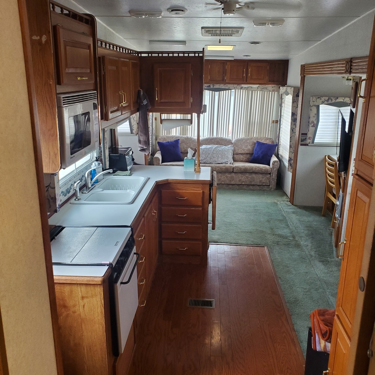 Is veain champála iontach é seo do ghrúpaí/do theaghlaigh mhóra. Tá an teach bunc 37 troigh seo ina bhfuil 2 shleamhnán amuigh fairsing de réir mar a thagann siad. Deir monaróirí codladh 9 ach is fútsa atá sé sin. Tá leaba bhanríona ann ina bhfuil seomra leapa beag tiomnaithe do spás oibre, seomra leapa cúil ina bhfuil an fhéidearthacht go mbeadh 4 bhunc ann, tolg a tharraingíonn amach i leaba agus go n - iompaíonn an tábla ina leaba chomh maith. CUISNEOIR LÁNMHÉIDE. Neart spáis chun do ghabháil a reo.