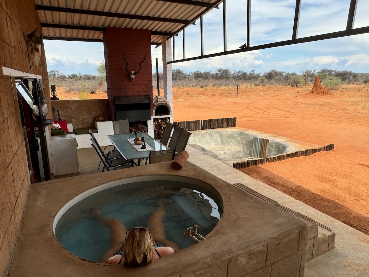 Tá ár dteach feirme suite ar an mbealach go Swakopmund, 18 km ó Okahandja. Tá teach feirme deas traidisiúnta againn le beár mór lapa agus cluthar amuigh faoin aer. Is féidir leat taitneamh a bhaint as an timpeallacht shuaimhneach agus an cluiche ar an bhfeirm, cuid de na radharcra is áille sa Namaib, chomh maith le linn snámha mhór do na laethanta téite. Aimsir agus am ag ceadú, is féidir leat dul chuig sundowner nó tiomáint álainn. Is féidir dinnéar agus lón a iarraidh. Tá gach béile iníoctha le hairgead tirim