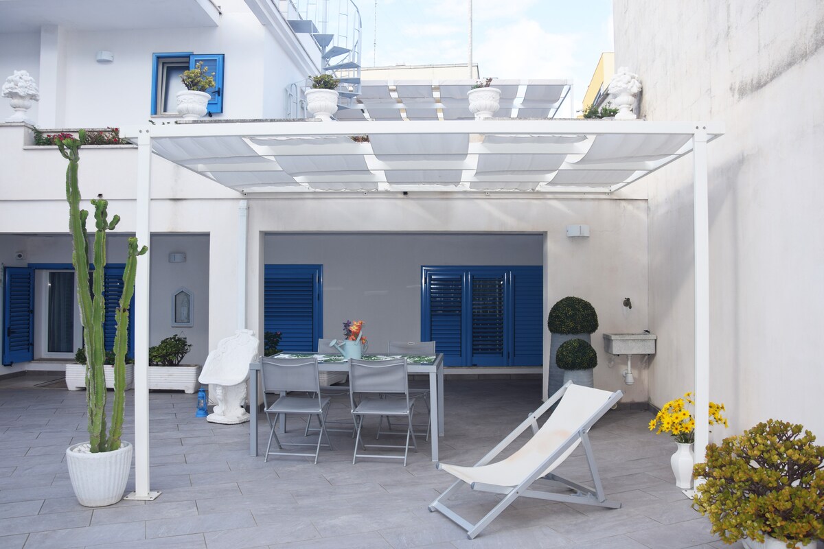 Suite i ndúlra na Meánmhara agus ag breathnú amach ar fharraige iontach atá soiléir ó thaobh criostail de, is teach fáilteach é La Salentina i ndeisceart domhain Puglia, feadh bhóthar cósta álainn Otranto - Santa Maria di Leuca. Le dhá ardán radhairc ar an bhfarraige, taobh istigh atá deartha go tuisceanach agus tobán hidreamassage le cróiteiripe, is tearmann foirfe é dóibh siúd atá ag lorg scíthe, barántúlachta agus áilleachta áit ina dtosaíonn gach lá le draíocht éirí na gréine thar an bhfarraige.