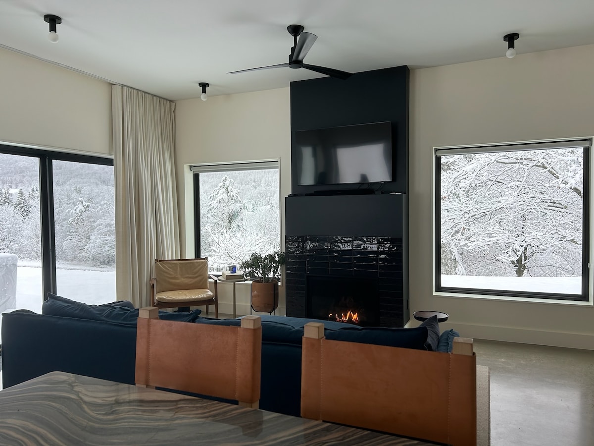 Bain sult as fíorpharáidís gheimhridh ar do réadmhaoin phríobháideach féin! Bain sult as radhairc áille de na sléibhte ar fud an domhain. Tá an teach beag bídeach seo suite ar dhá acra phríobháideacha, tá áit phaitió lasmuigh ann le haghaidh tolgadóireachta, greadadh agus réaltaí ag breathnú san oíche. Tá an taobh istigh feistithe go hiomlán le sorn comhiompair, cuisneoir, seomra folctha, Wi-Fi, agus leaba mhór le fuinneog a fhéachann soir chun an éirí gréine foirfe a fheiceáil! Tabhair faoi deara, le linn mhíonna an gheimhridh, go mbeidh ort páirceáil ag an mbealach isteach agus siúl chuig an teach beag bídeach (siúl 2 nóiméad)