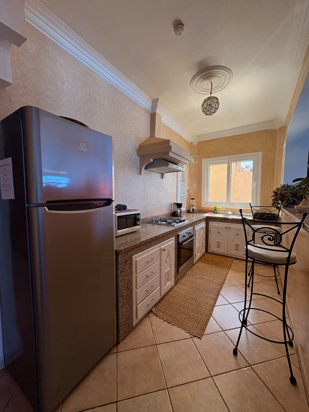 ✨ F2 Haut Standing – Vue Panoramique Séjournez dans un appartement moderne équipé et raffiné offrant une vue exceptionnelle sur mer, montagnes et jardin. • Confort : Salon luxueux et grande chambre spacieuse. • Extérieur : Grand balcon double façade avec vue panoramique. • Cuisine équipée+kitchenette d’été sur le balcon + SDB :Moderne et épurée. • Luxe : Piscine, résidence sécurisée et parking. • Plage et souk El had à 8 min, musée à 5 min, aéroport à 27min . commerces et lifestyle à vos pieds.