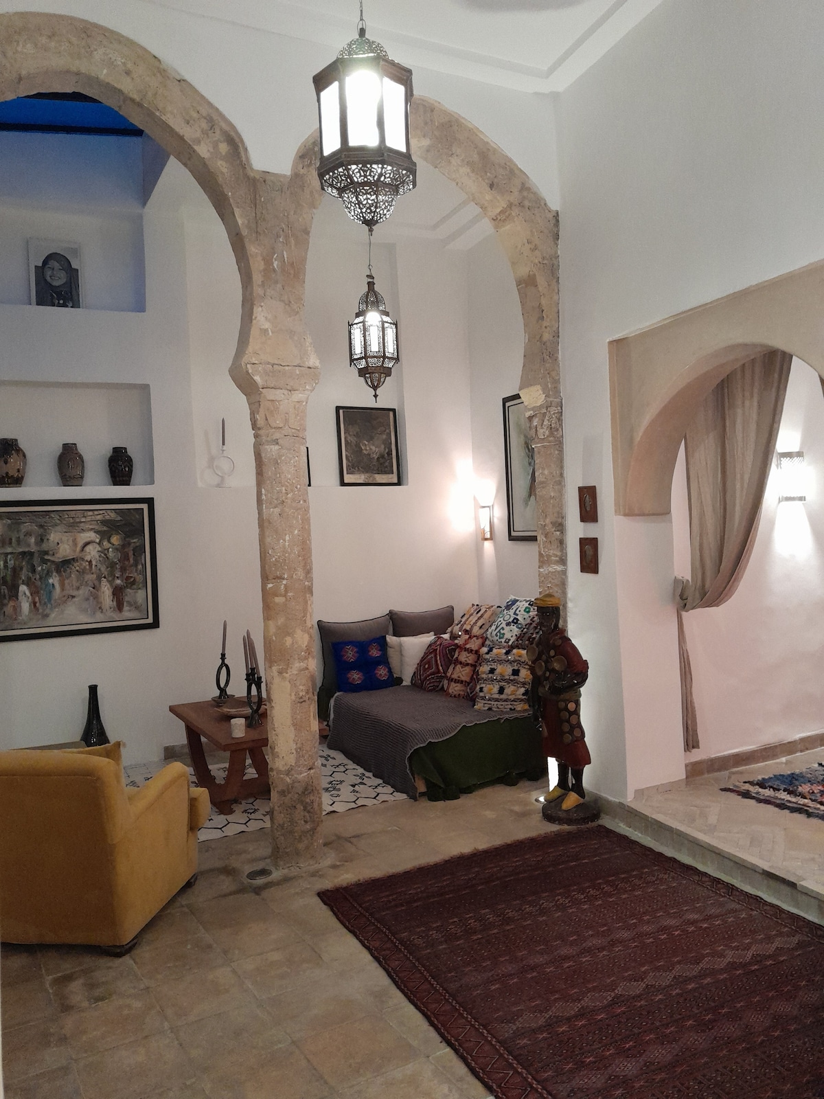 Riad Nadia Riad beag gleoite le maisiúchán traidisiúnta agus gan tranglam. Tá sé suite taobh istigh de chathair na Portaingéile in Azemmour . I gcomharsanacht (an casbah)agus( an Mellah ) 50 méadar ón gcearnóg( Moul Nice )agus ón abhainn mhór (Oum Erbia). cuimsíonn sé 3 sheomra leapa le seomra folctha aonair ar an gcéad urlár ,paitió le tobair 2 sheomra suí beag scíth, itheann sala cistine cithfholcadán leithris. Ardán álainn grianmhar ag breathnú amach ar Abhainn Oum Erbia