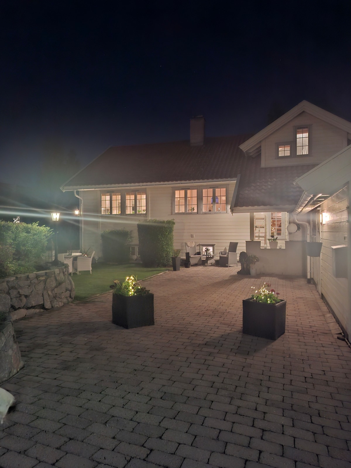 Fáilte chuig ár dteach fairsing, atá foirfe do theaghlaigh a bhfuil páistí acu! Anseo tá cónaí ort faoin tuath timpeallaithe ag páirceanna áille, ach gan ach 2 km ó shiopaí agus ó ionad siopadóireachta. Breacadh mór grianmhar de 1.6 acra le trampailín, bosca gainimh, seastán luascáin agus súgartha. Bain sult as an saol amuigh faoin aer le poll dóiteáin, póirse mór le pailliún, grúpa maith tolg agus gríoscán gáis. Tá 4 sheomra leapa, 3 sheomra folctha, dhá sheomra teilifíse agus an fhéidearthacht go mbeadh áiteanna codlata breise sa teach. Tá seomra aclaíochta agat san íoslach freisin. Páirceáil do 4 -5 charr agus radharc álainn ar abhainn Drammenselva.
