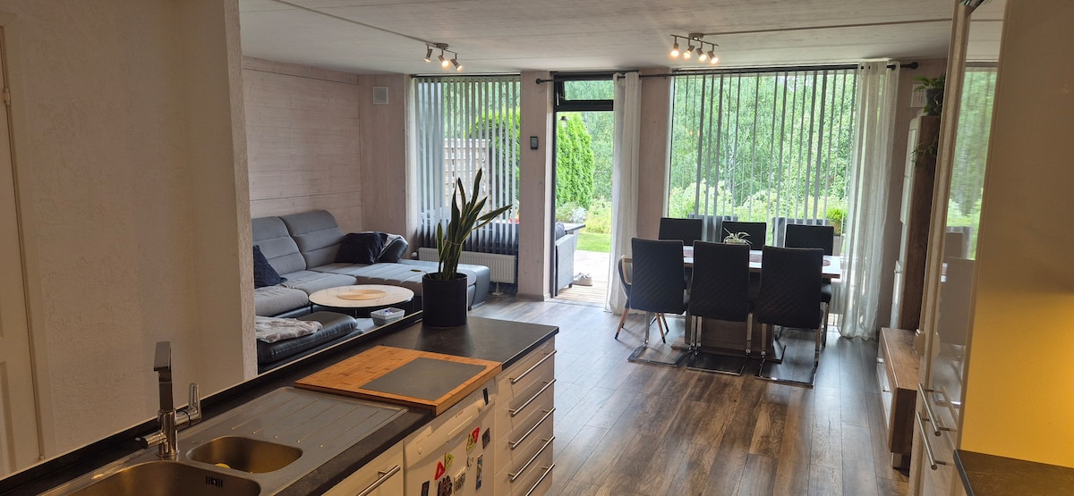 Stíl nua - aimseartha agus ildaite, urláir choincréite ghainimh, ballaí taobh amuigh saoirseachta. An - áisiúil le miasniteoir, meaisín níocháin agus triomadóir tumble. Wi - Fi gan sreang Gairdín príobháideach Neart spáis chun carr a pháirceáil díreach taobh amuigh den doras. Achar gearr chuig an iarnród éadrom agus cosáin dheasa, gan ach 200 méadar ar shiúl.