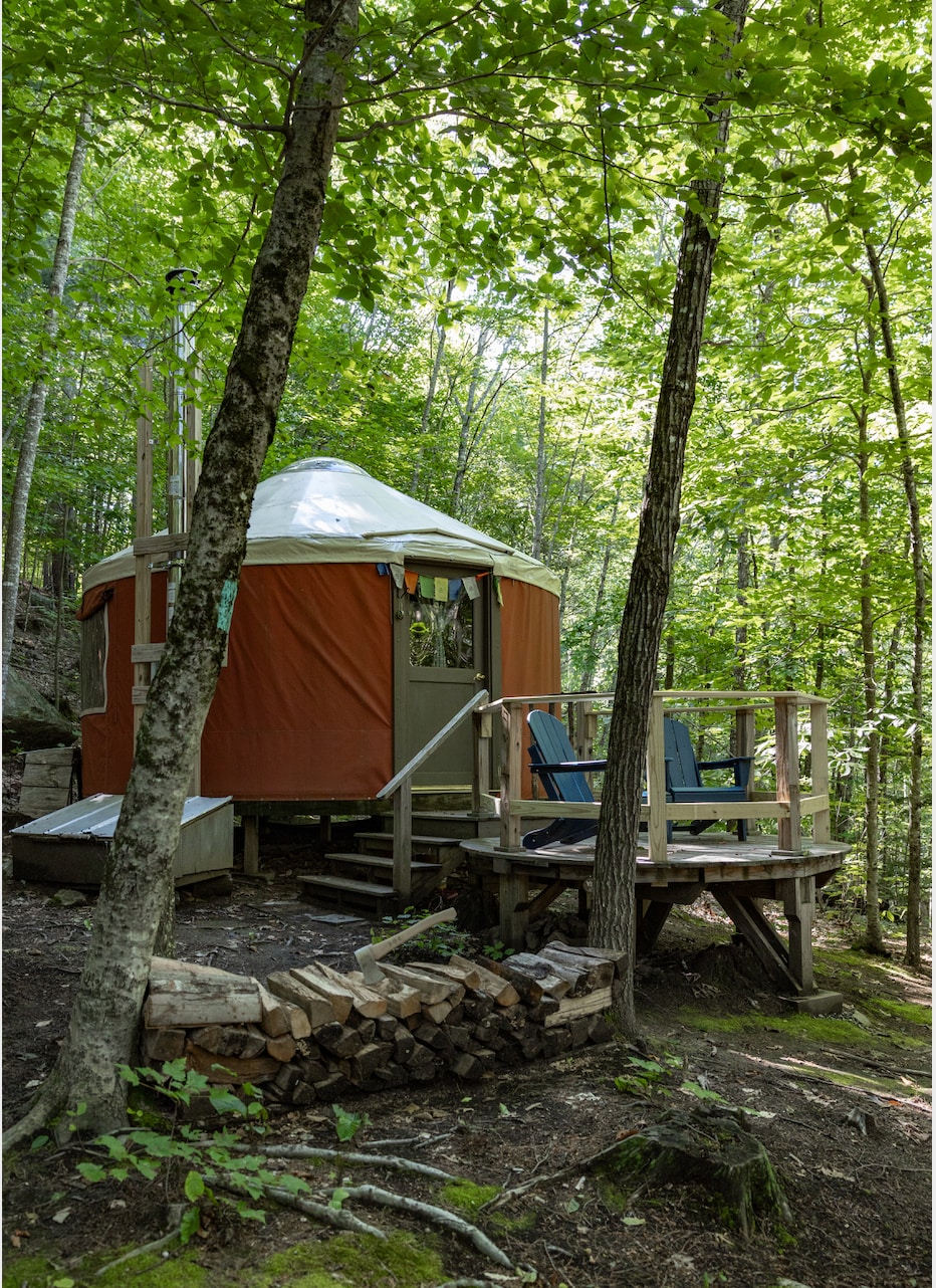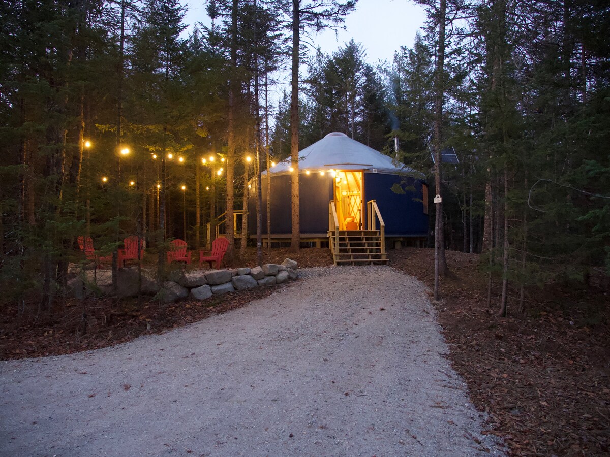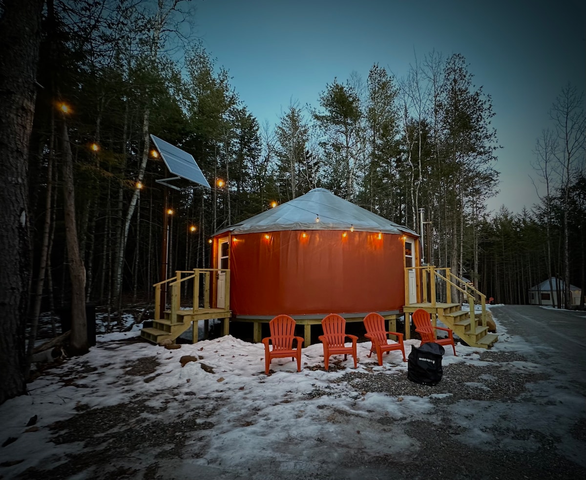 Yurt teolaí lasmuigh den ghreille, a thairgeann eispéireas campála uathúil ó cheann ceann na bliana atá neadaithe i gcoill Brownfield, Maine. Áit atá oiriúnach do theaghlaigh chun cluichí boird a dhíphlugáil, a scíth a ligean, a imirt, marshmallows rósta agus cosáin le haghaidh siúlóide agus rothaíochta agus rochtain ar Abhainn na nAoirí i rith an tsamhraidh agus i rochtain ar chonair am an Gheimhridh le haghaidh siúl sneachta, sciáil trastíre agus gluaisteán sneachta.