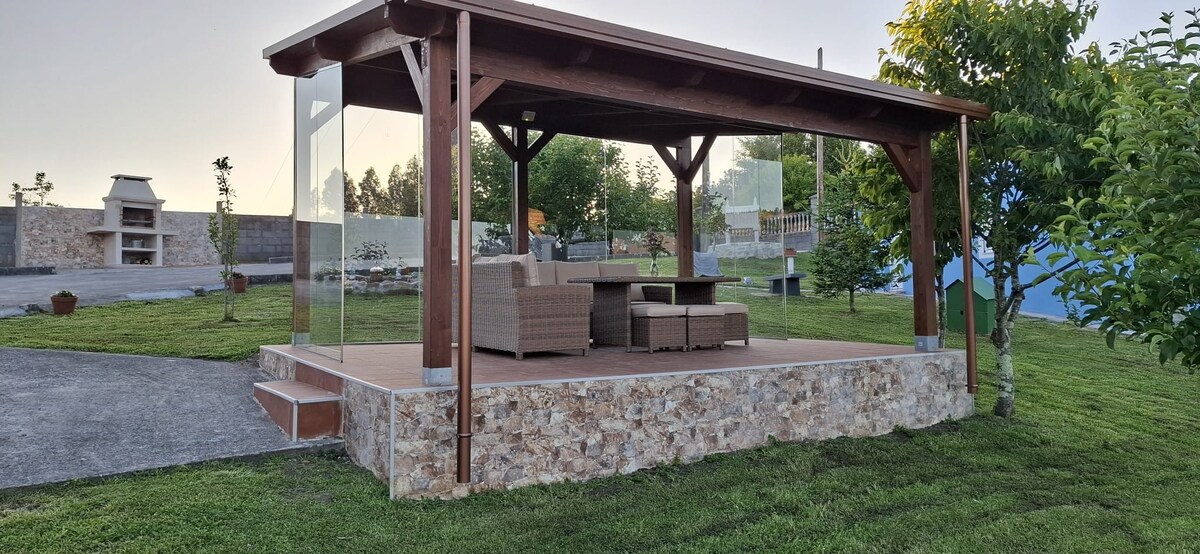Teach tuaithe 20 nóiméad ó La Coruña agus 50 nóiméad ó Santiago de Compostela. Feistithe go hiomlán. Le painéil ghréine agus téamh underfloor ag sorn adhmaid sa tolglann. Ideal chun cúpla lá a chaitheamh i suíomh an - síochánta.