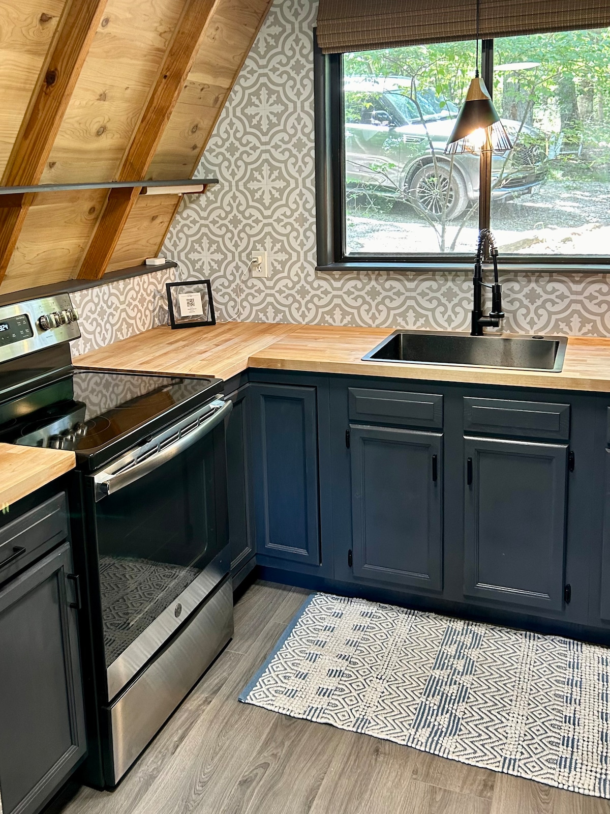 Suite sa choill ag breathnú amach ar Loch Foxfire, tá an áit saoire foirfe don cheithre shéasúr sa teach A-fhráma seo. Nuair a thiteann an sneachta, athraíonn sé go dtí an tearmann geimhridh tipiciúil. Bí ar do shuaimhneas in aice leis an teallach cloiche, áit a bhfuil radhairc ar an loch frámaithe ag crainn reoite. De réir mar a théann an aimsir i dteocht, glaonn an loch ort! Bain sult as rochtain dhíreach ar Loch Foxfire ónár nduga príobháideach. Caith do laethanta ag iascaireacht, ag snámh, nó díreach ag tógáil na gréine. Cuideoidh an sealla seo leat áthas agus scíth a fháil, is cuma cén séasúr.