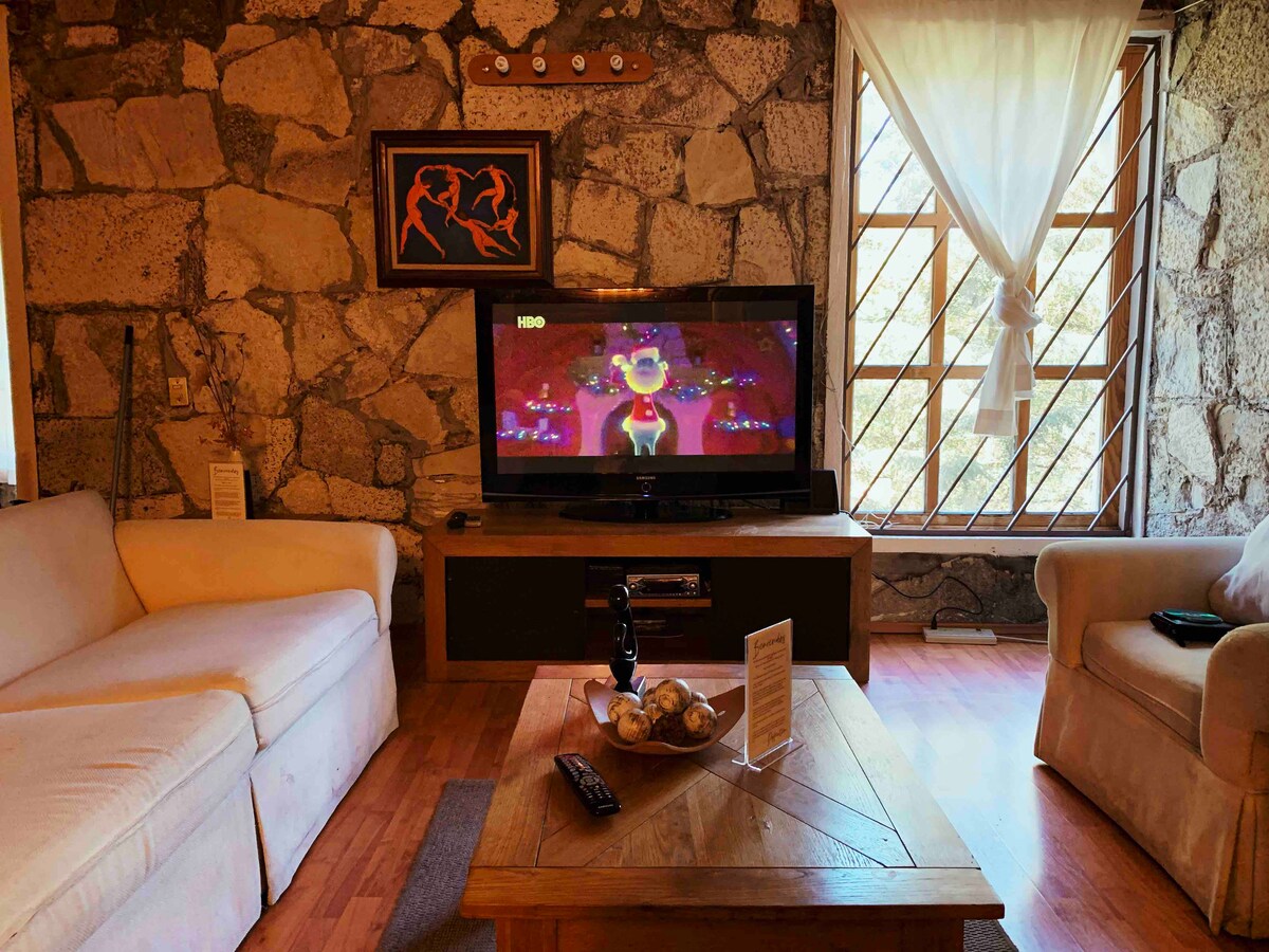 Éalaigh go suaimhneas an tsléibhe agus bain sult as an gcábán teolaí seo atá timpeallaithe ag foraois, díreach 15 nóiméad ó Pachuca agus an - ghar do na Bailte Draíochta: Real del Monte, Mineral del Chico agus Huasca. Ideal chun dearmad a dhéanamh ar luas na cathrach, athcheangal a dhéanamh leis an dúlra agus taitneamh a bhaint as timpeallacht the, chiúin agus bhríomhar. Acmhainn do 4 dhuine le dhá sheomra leapa