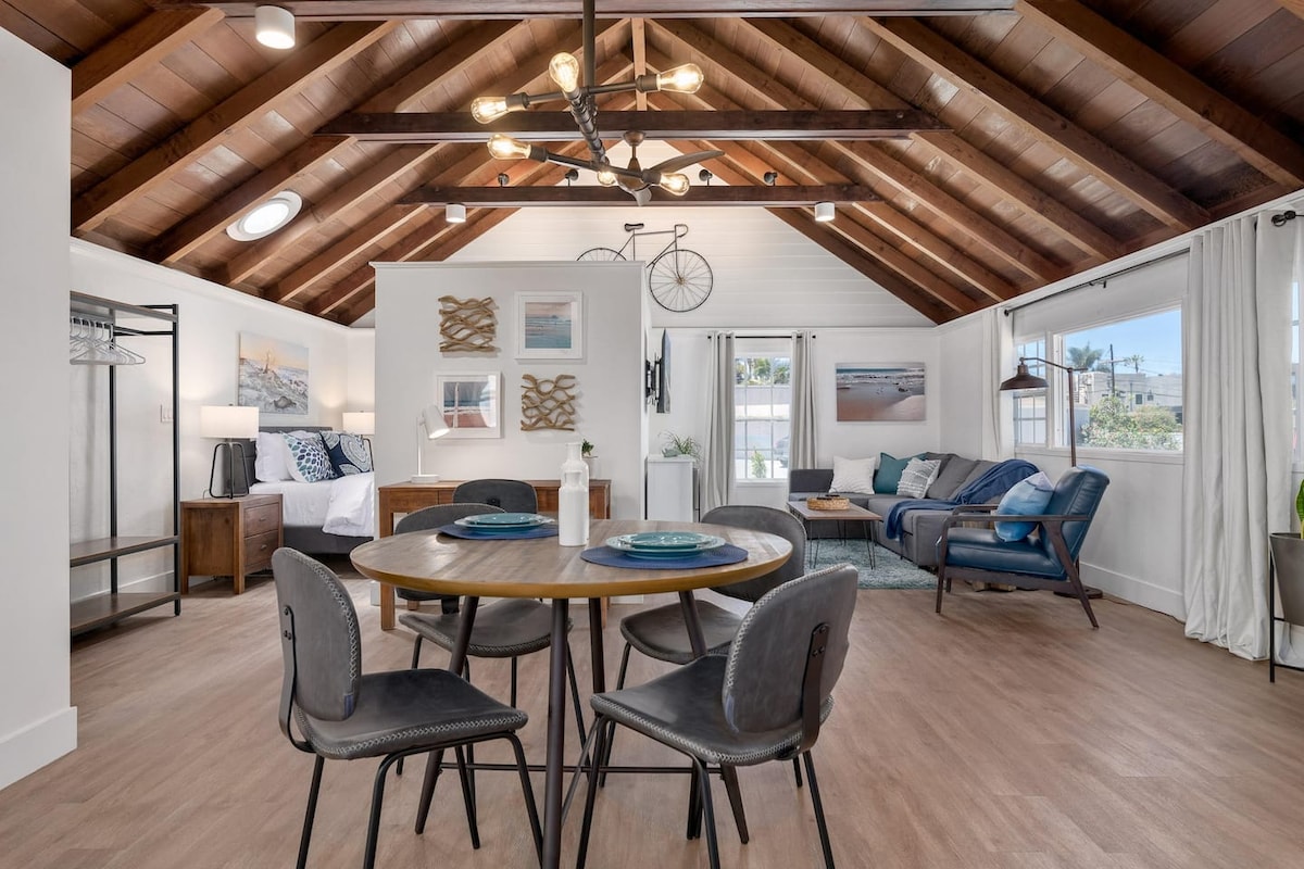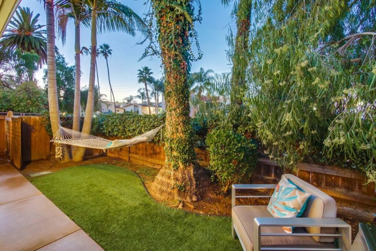 Pacific Beach Zen Villa! Céimeanna suite ón nGaineamh agus ón Aigéan. Tugann an paitió brí iomlán nua don fhocal Oasis, ina mbainfidh tú taitneamh as teallach agus teilifíseán lasmuigh, cithfholcadán lasmuigh agus tobán ar maos agus barr álainn úrnua den líne Hot Tub. Is le haghaidh d'úsáid phríobháideach amháin na saoráidí go léir agus tá an réadmhaoin fálaithe go hiomlán do do phríobháideacht. I sráid shíochánta ina bhfuil páirceáil gheataithe. Tá Aisling ar an taobh istigh freisin! Tocht Posturepedic Luxe, cistin Cheff, cithfholcadán báistí, Central AC.