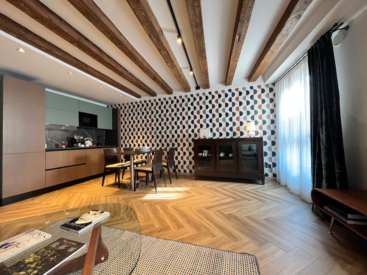 Gach uair a shiúlaim isteach san árasán agus bím ag breathnú amach an fhuinneog, braithim go bhfuilim ag tumadóireacht isteach i gcroílár na cathrach. Tá rithim Padua marcáilte ag na stallaí, táblaí na mbeár, dordán na ndaoine a ritheann chun na hoibre agus iad siúd atá, ar an láimh eile, compordach. Tá an t - árasán geal agus tá sé os cionn Piazza dei Signori agus go cliathánach ar Via Dante. Tabharfaidh ardaitheoir, só trí lár na cathrach, chuig an tríú hurlár den fhoirgneamh stairiúil thú ón áit ar féidir leat taitneamh a bhaint as radharc a chuirfidh iontas ort!