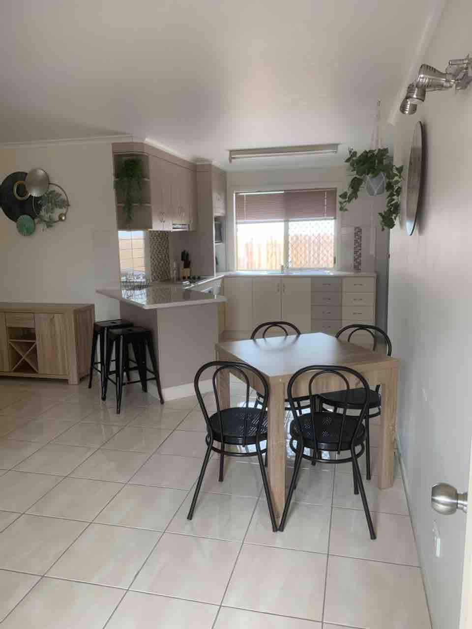 Coinnigh simplí é ag an teach síochánta seo atá suite go lárnach ar phríomhshráid North Mackay. Téigh amach an geata chuig siúlóid álainn Gooseponds, a thabharfaidh thar pháirc scátála, stáisiúin aclaíochta, clóis súgartha agus an linn snámha pobail thú, Taverns 500m an bealach ón doras tosaigh, siopa áise/beir leat ar fud na sráide. Tá sé ar fad ann. Tá an teach feistithe go hiomlán le spás glan glanta chun go mbainfidh tú taitneamh as. Lig do scíth ar tholglann na deice cúil nó bain sult as dinnéar lasmuigh ar shuíomh stíl an bheáir.
