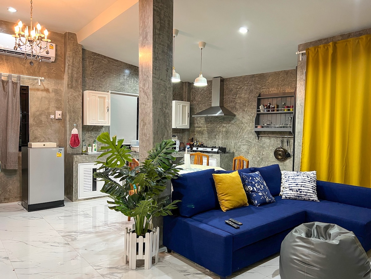 ยกกันมาทั้งครอบครัวเลย ที่พักดีๆ บ้านหลังใหญ่ กว้างมาก 3 ห้องนอน 4 ห้องน้ำ พักได้12 ท่าน ห่างจากถนนคนเดินเพียง 900 เมตร