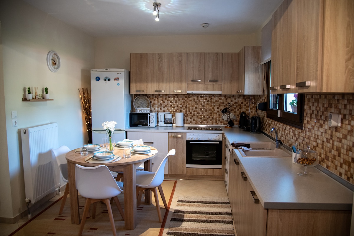 Is árasán teolaí 40m2 é árasán K&V ina bhfuil balcóin phríobháideach, i dteach scoite ina bhfuil clós agus páirceáil phríobháideach saor in aisce in Alexandroupolis, díreach 2, 50 km ó thrá EOT agus 2 km ó Faro na cathrach. Foirfe do lánúin agus do theaghlach 4 bhall. I gcomharsanacht árasán K&V is féidir le duine ollmhargadh SKLAVENITIS a fháil le stáisiúin luchtaithe carranna leictreacha, mionmhargadh agus cógaslann. Tá Aerfort Demokritos 7 km ón lóistín.