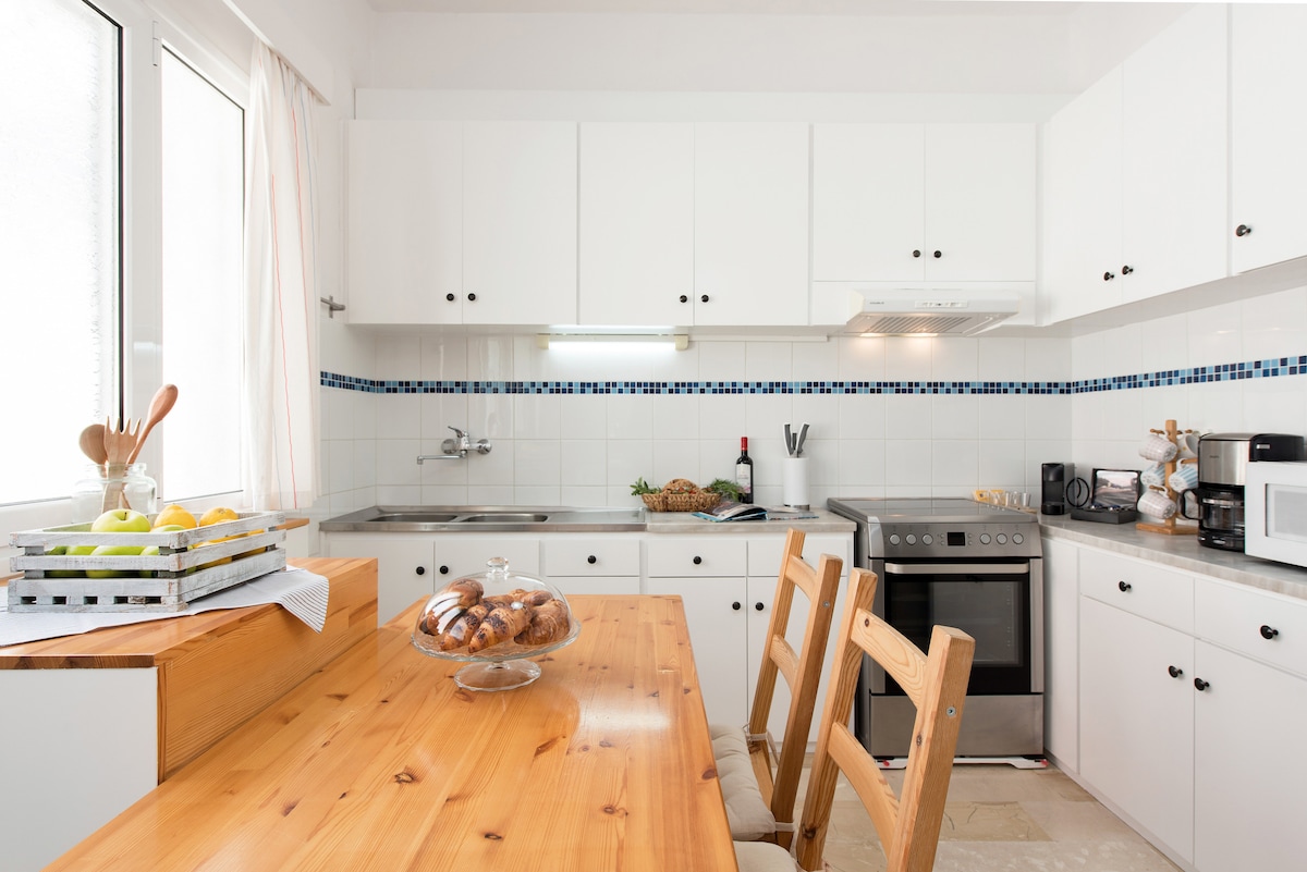 Tá ár Villa Estia (92m2) suite go díreach in Paleokastrista iontach. Le radharc na Mara ar bhá Platakia agus ar an gcalafort Alipa, is áit speisialta é an teach seo le bheith ann. Cinntíonn dhá sheomra folctha, dhá sheomra leapa, cistin nua - aimseartha oscailte lánfheistithe agus seomra maireachtála agus bia le chéile ina bhfuil teallach - gach ceann nua a rinneadh in 2018 - an compord is fearr do d'fhanacht. Tá an teach do 4 - 6 dhuine, Is féidir an leaba thoilg a úsáid do 2 dhuine eile.
