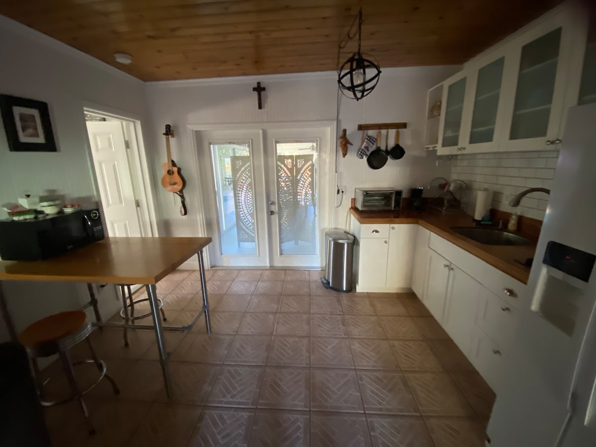 Tearmann príobháideach cois uisce w/ duga, tiki, tobán te, linn snámha & clós. Áit chompordach fhairsing chun tús a chur ar ais & do scíth a ligean. Taispeánann limistéar nádúrtha chun éin & fiadhúlra álainn a chaomhnú. Tá 7 gcadhc againn. Is féidir le bád bád duga & cúrsáil chuig an aigéan nó croílár Stuart gan aon droichid sheasta. Cuirimid 2 rothar ar fáil freisin. Mothú cosúil le cábáin ach w/ hairicín tionchar fuinneoga & doirse, urláir nua, cithfholcadán, vanity, cuntar cistine, & bothán tiki. Dhá ámóg mhóra & firepit. Na saoráidí go léir a bhaineann leis an teach ach mothaíonn sé cosúil le parthas.