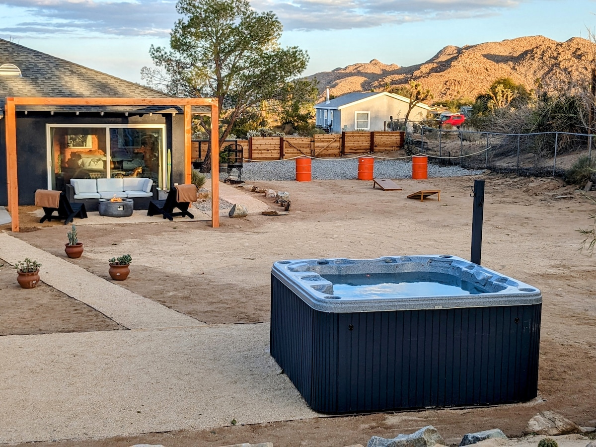Howdy y'all! Calling all stargazers, space cadets and extraterrestrial enthusiasts: The Cosmic Corral awaits. Welcome to our otherworldly desert escape. Hovered above downtown Joshua Tree, a short mosey to the park, our 1.5-acre oasis offers a unique experience to all aliens, cowboys and city slickers alike. Allow yourself to be beamed up while taking in the Milky Way from a cozy trough of boiling water (a hot tub to you city folk) or cozied up fireside. See you soon, space cowboys and cowgirls.