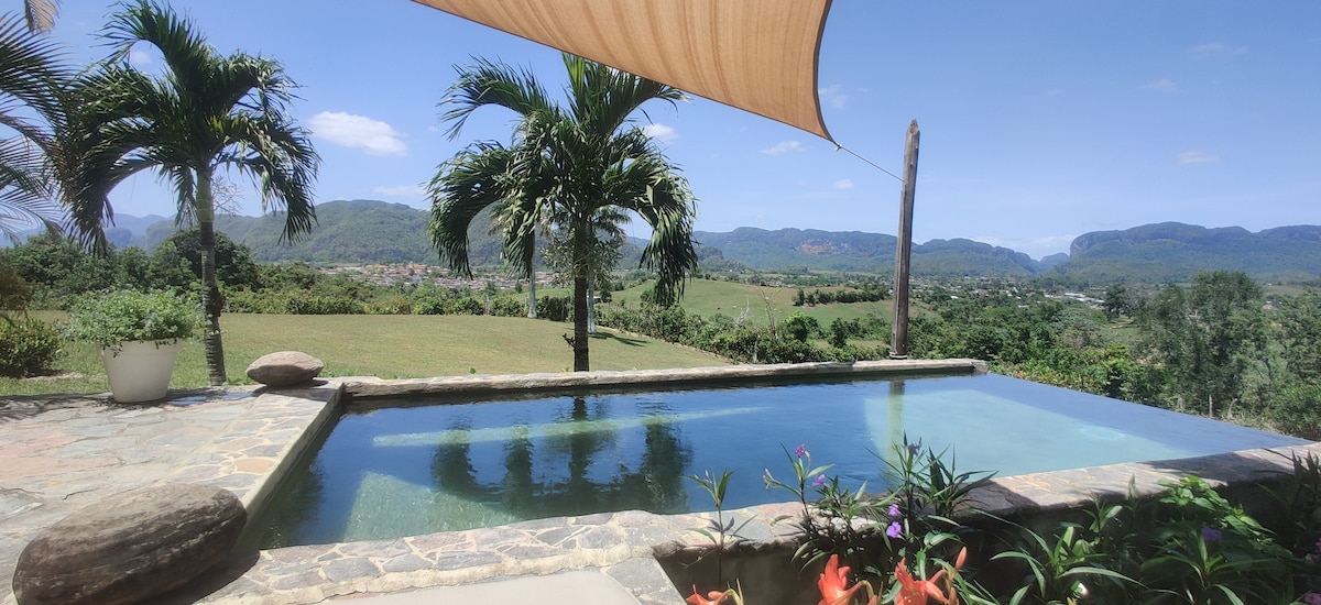 Lóistín neamhspleách ina bhfuil ardán agus radhairc dhochreidte faoi luí na gréine thar shléibhte Viñales. Codlaíonn sé 4 leaba dhúbailte, seomra folctha príobháideach, aerchóiriú agus cistinéad. Chomh maith leis an tseirbhís Wi - Fi saor in aisce, tá gineadóir leictreach ann le haghaidh briseadh cumhachta, gaothrán agus solas in - athluchtaithe. Lonnaithe gar do lár an tsráidbhaile agus do chosáin an dúlra. Foirfe do theaghlaigh nó do chairde atá ag lorg príobháideachta, compoird agus eispéiris bharántúla.