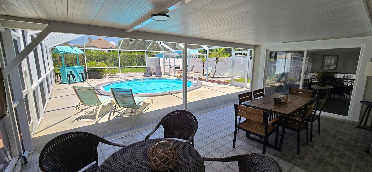 Níl an teach LINN SNÁMHA teolaí, glan agus nua - aimseartha seo ach 5 mhíle ó oileán Anna Maria, gar do shiopaí de gach cineál agus bialanna iontacha. Níl sé ach 6 mhíle chuig acadaimh img freisin. Tá 3 sheomra leapa agus 2 sheomra folctha iomlána ann ina bhfuil linn snámha álainn. Tá clós iomlán príobháideach agus fálaithe ann a bheidh foirfe do ghníomhaíochtaí beárbaiciú agus do ghníomhaíochtaí lasmuigh! Beidh an clós mór foirfe chun do chara fionnaidh a thabhairt leat chomh maith! Tá an teach seo sa suíomh foirfe nach mbeidh díomá air!