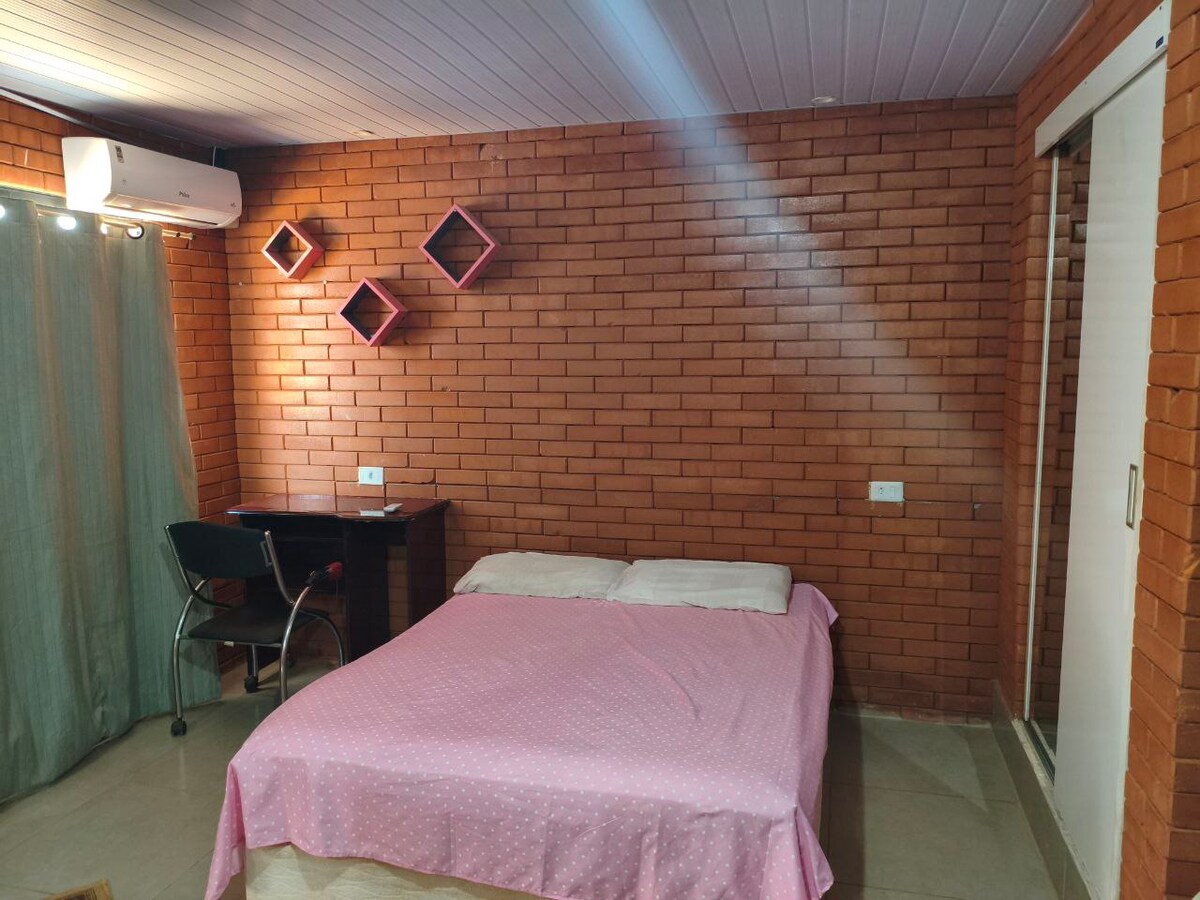 Lóistín teolaí agus feidhmiúil, atá oiriúnach do dhaoine singile nó do lánúineacha. Seomra aerach le bord agus cathaoireacha, cistin atá feistithe le huirlisí, mionbheár agus micreathonnán, déantóir iarainn agus caife. Seomra leapa compordach, seomra folctha ina bhfuil cithfholcadán maith. Timpeallacht ghlan, gheal agus dhea - aeráilte. Suíomh den scoth, bloc amháin ó Capim Dourado Shopping. Compord agus praiticiúlacht do d'fhanacht. Déan áirithint anois!
