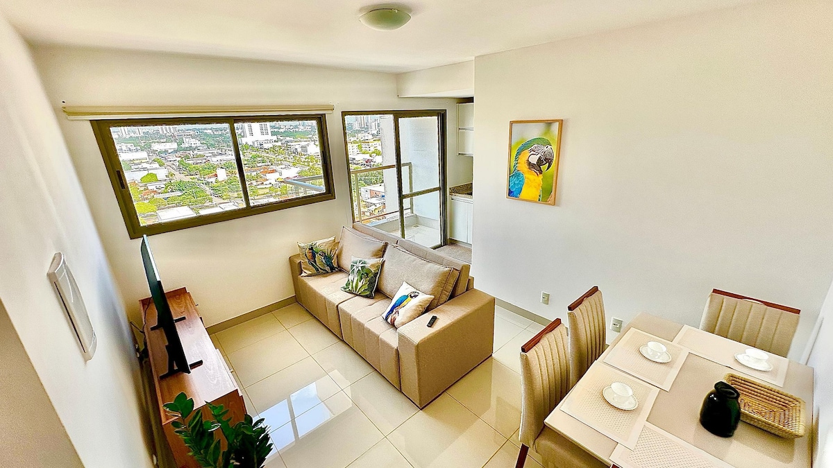 Empreendimento localizado no centro da cidade, mobiliado, com piscina (uso mediante agendamento), estacionamento individual, sistema de monitoramento 24 horas, elevador, Wi-fi individual, Netflix, 2 quartos, 2 ar-condicionados, sala, cozinha, 1 WC, Samrtv 60", microondas, chuveiro elétrico, lavadora lava e seca, cafeteira, ferro de passar, secador de cabelo, chapinha, escova modeladora, tudo com a comodidade que você precisa.