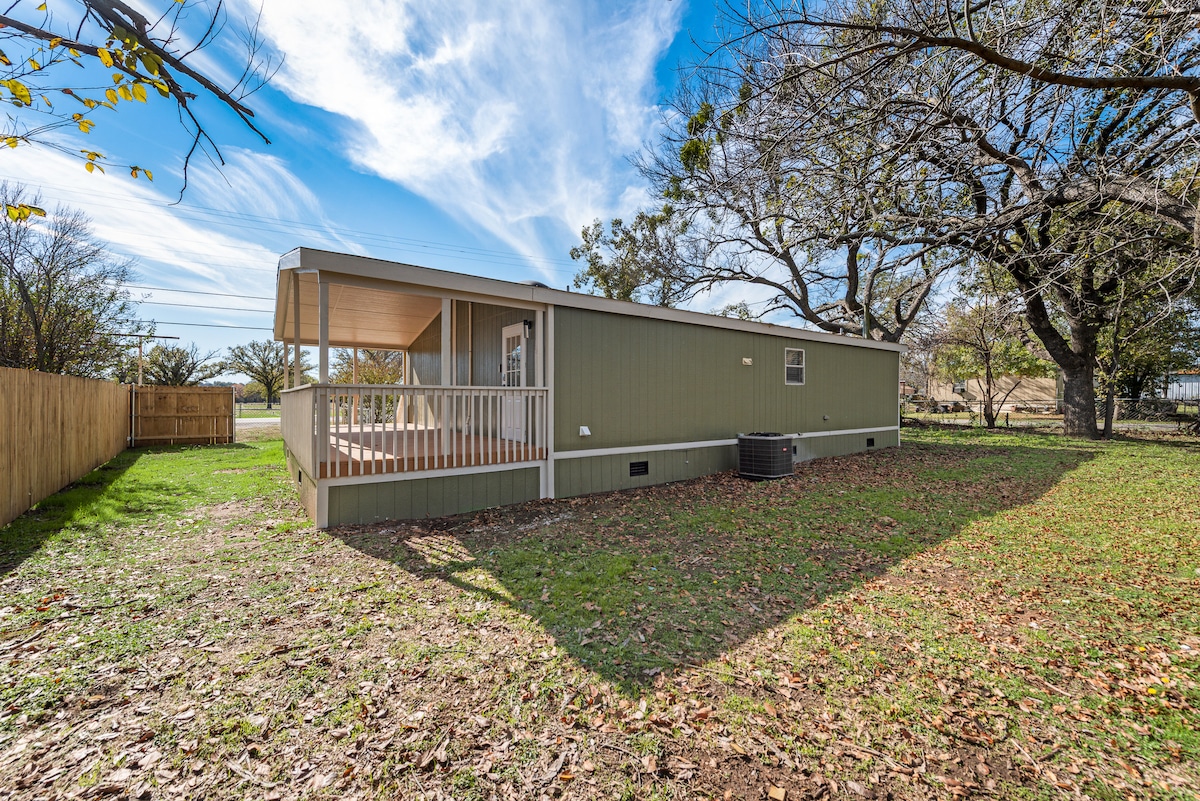 Éalaigh chuig an tearmann suaimhneach galánta seo atá oiriúnach do pheataí i gcomharsanacht cúrsa gailf in aice le Loch Granbury. Bain sult as éirí gréine iontach, oícheanta teolaí ag an bpoll dóiteáin, agus spás lochta spraíúil. Lonnaithe díreach 1.5 míle ó sheoladh báid phoiblí, tá spás ann chun do leantóir báid a pháirceáil. Déan iniúchadh ar lár stairiúil Granbury, atá lán le siopaí, bialanna, fíonlanna agus siamsaíocht. Foirfe do lánúineacha, do theaghlaigh, nó do chairde, cumascann an saoire nua - aimseartha seo compord, draíocht agus áisiúlacht. Cuir d'fhanacht in áirithe inniu!