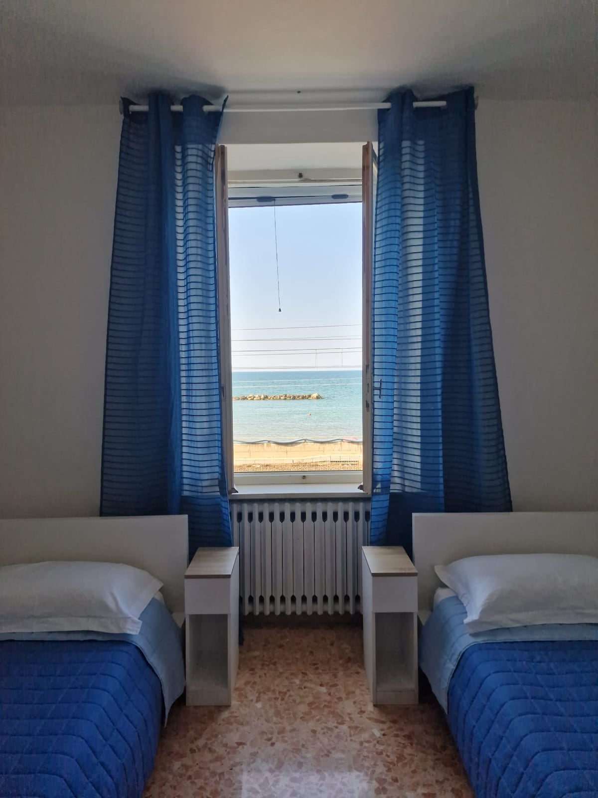 Árasán geal aon seomra leapa le radharc, nua, ciúin, te, 3ú hurlár le hardaitheoir, WIFI thar a bheith tapa, aerchóiriú i ngach seomra. Stáisiún Traenach 650 méadar ar shiúl. Rogha Marina Militare cúpla céad méadar ar shiúl (laistigh d'achar siúil). Ceantar an - seirbhísithe. Ollmhargadh faoin teach. Stáisiún Bus in aice láimhe i ngach treo.