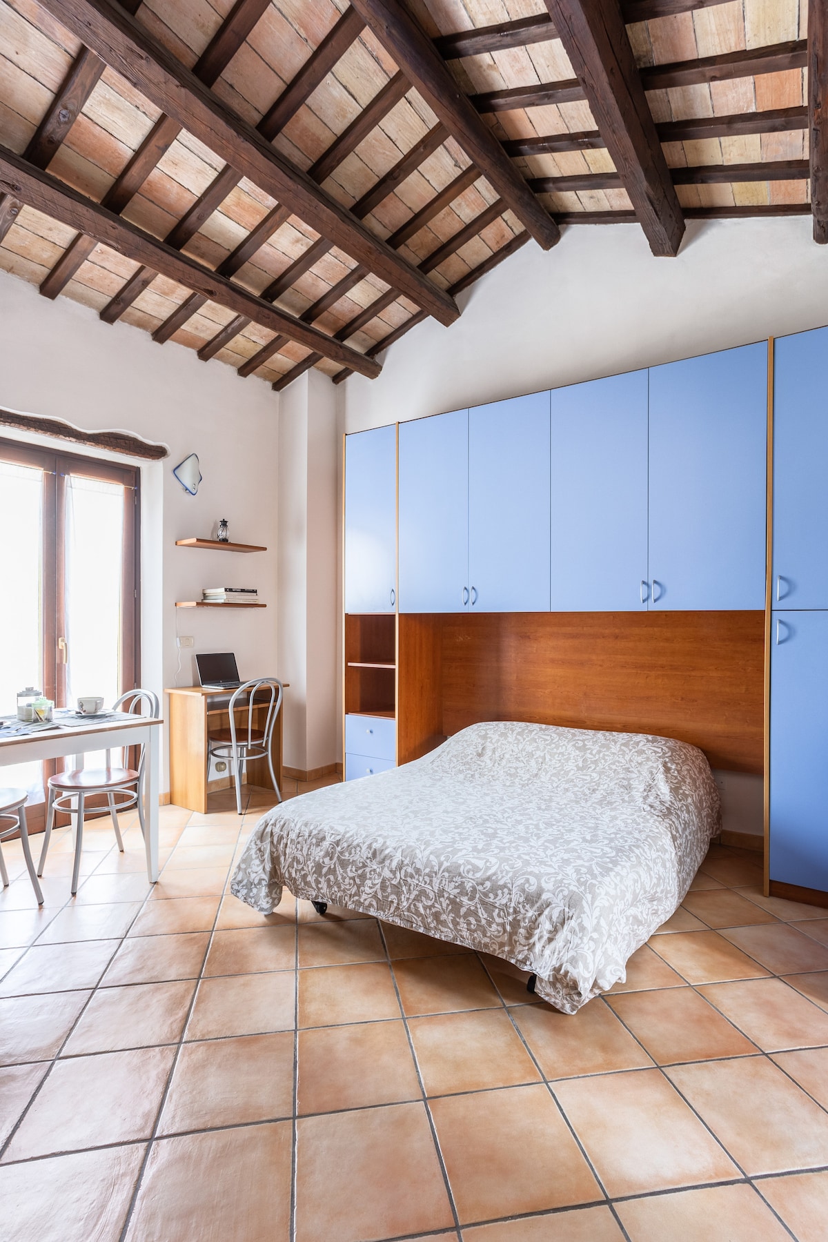 Árasán aoibhinn i bhfoirgneamh stairiúil, le radharc iontach ar an bhfarraige. Ciúin mar áit i limistéar do choisithe. Glanadh. Páirceáil ar tháille ach cúpla céim ón lóistín. Páirceáil le rátaí lascainithe le haghaidh stadanna fada ag 600mt. Stad bus 500 méadar ar shiúl. Suíomh straitéiseach: cúpla céim ó shéadchomharthaí meánaoiseacha uile na cathrach, an Teatro delle Muse agus an Port. Do bheirt, suas le triúr a bhuí leis an leaba thoilg sa seomra suí thuas staighre. Cód Aitheantais Náisiúnta: IT042002C2A7LDF33G