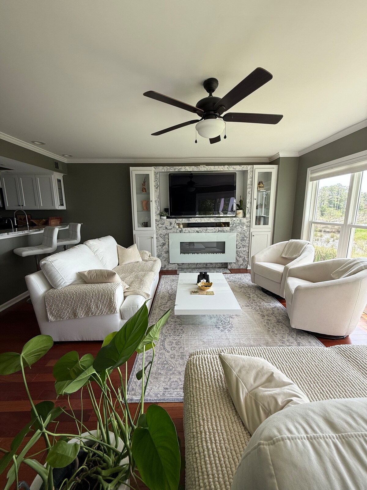 Is árasán urláir uachtair é seo atá suite ar an muiríne i gCuan Fairfield. 10 nóiméad go lár stairiúil New Bern agus áisiúil do Cherry Point chun teacht suas le mic agus iníonacha roimh an imscaradh. Cuirimid teach álainn ar fáil gar do gach ceann atá ar fáil in New Bern agus in Atlantic Beach! Cistin lánsocraithe. Áit fhoirfe do shaoire ghearr ina bhfuil go leor páirceála do leantóir feithicle agus báid. Nó tabhair leat do Chlubanna Gailf le haghaidh babhta anseo ag Club Gailf Chuan Fairfield. Táimid ag tnúth le tú a óstáil.