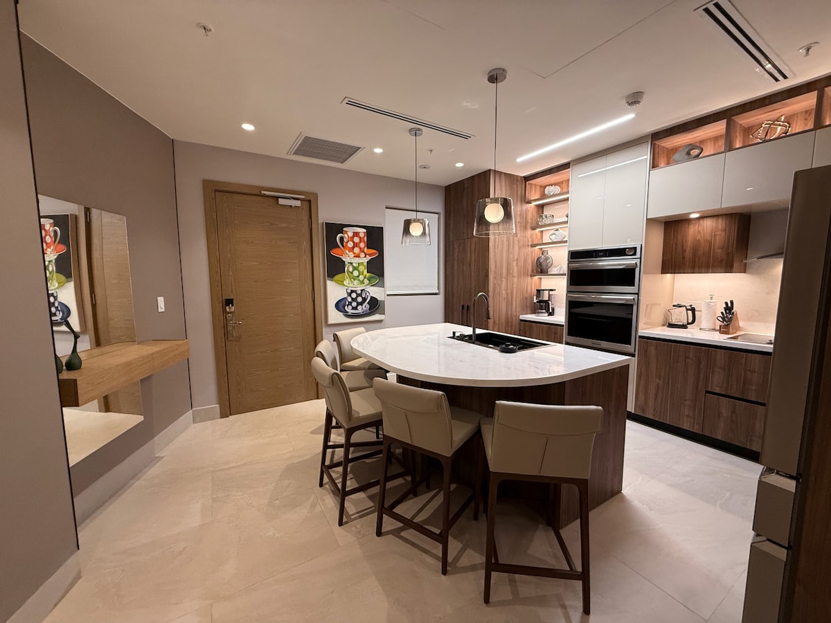 escondidapanama • Tearmann sómasach ar imeall na trá atá foirfe do theaghlaigh - Túr 7 - 605 • Máistir-svuít le seomra folctha en-suite ar nós spá agus teilifís mhórscáileáin • An dara seomra leapa ina bhfuil dhá leaba iomlána agus teilifís ardchaighdeáin le scáileán mór • An tríú seomra leapa ina bhfuil leapacha bunc, spás oibre ón a bhfuil radharc ar an aigéan, teallach agus teilifís mhórscáileáin • Cistin gourmet lánfheistithe le hoileán itheacháin • Seomra suí ina bhfuil córas fuaime mórthimpeallaí BOSE • Atmaisféar beacht suaimhneach le haghaidh saoire trá ardleibhéil