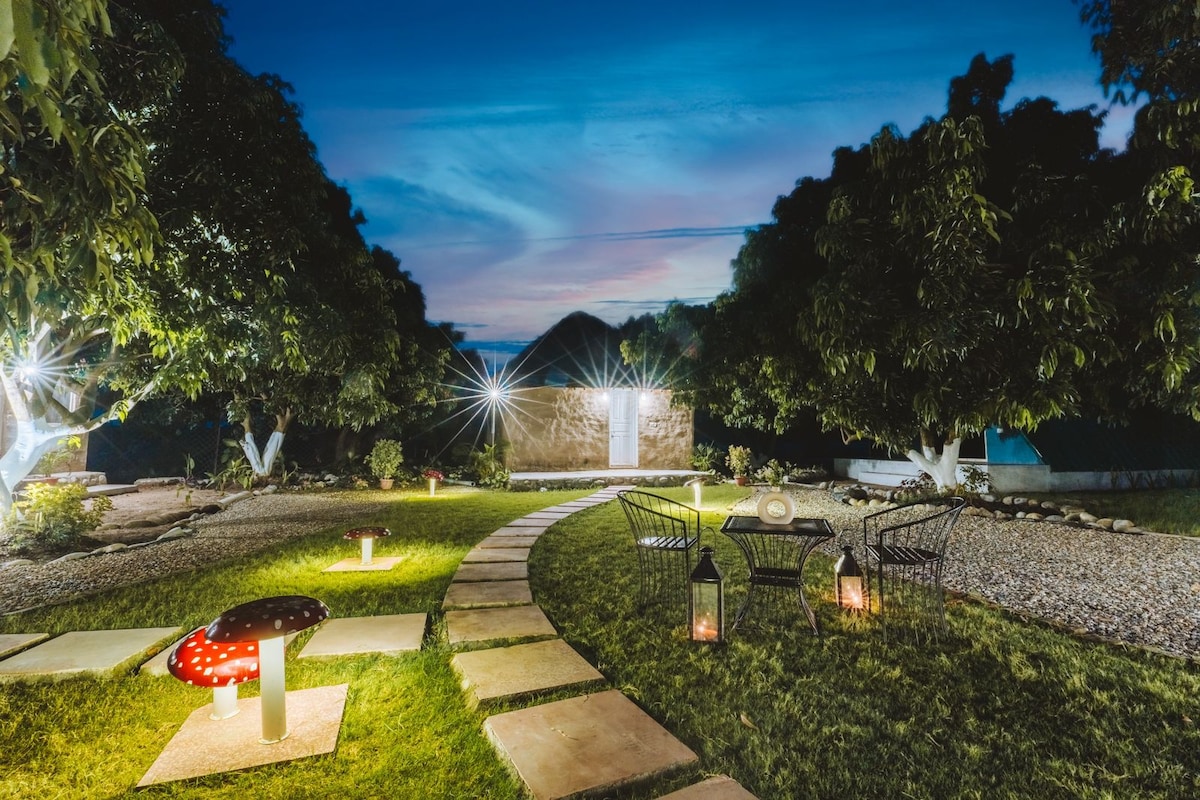 Táimid lonnaithe i sráidbhaile beag síochánta Himalayan in aice le Nainital, ar a dtugtar 'Ciseán torthaí Kumaon' is fearr. Tá an spás suaimhneach seo foirfe do bheirt. I bhfad amach ó hustle ach ní ó do earraí grósaera úra. Caiféanna aeistéitiúil agus dánlanna Ealaíne - iad go léir ag fad siúil. Timpeallaithe ag foraoisí Pine, úlloird úll, páirceanna sú talún, galgal (Himalayan Lemons) agus úlloird oráiste. Tá siúlóidí chuig lochanna in aice láimhe, picnicí gleoite agus faire éan leisciúil ag fanacht leat.