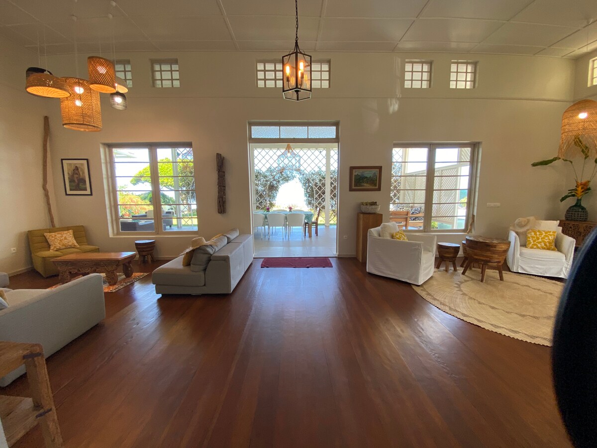 Lig do scíth sa teachín trópaiceach seo, sna sléibhte, ag airde 500 m, 30 nóiméad ón aerfort, le radharc uathúil i dTahiti an murlaigh agus Moorea, in áit chónaithe an - chiúin 2 sheomra aerchóirithe, le 2 theilifís, idirlíon, do 5 dhuine le 2 leaba rímhéide agus 1 leaba shingil nó 1 leaba rí agus 3 leaba shingil. Deic, Linn Snámha, Beárbaiciú Cistin le miasniteoir, micreathonnán, beár, oigheann, sorn gáis 1 seomra folctha, triomadóir gruaige, meaisín níocháin +triomadóir, iarann