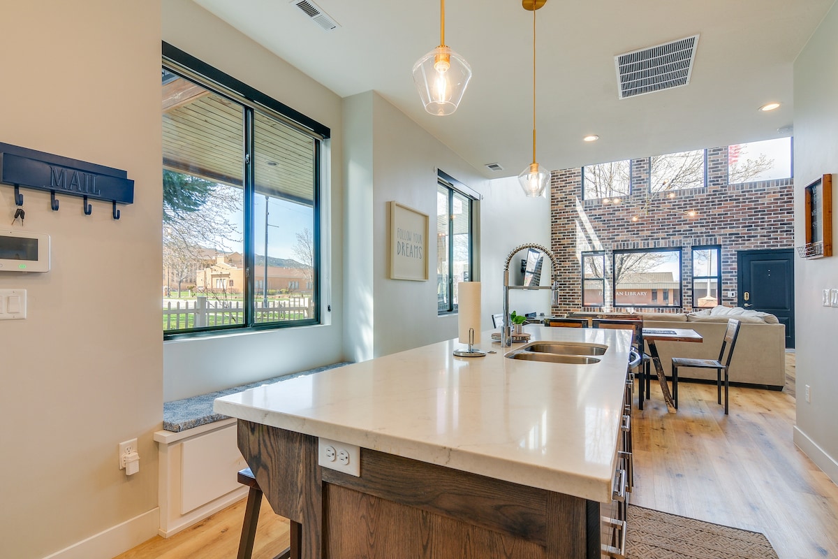 Suite idir Zion NP, Bryce Canyon, Cedar Breaks, Kannarra Falls agus ionad sciála Brian Head. Is áit mhór le rá de bharr an scéal 'Lord of the Rings' é an teachín saincheaptha uathúil seo! 5 nóiméad sa charr ó lár na cathrach stairiúla, in aice le limistéar áineasa Three Peaks. Is áit shábháilte chluthar é seo le do scíth a ligean ó d'eachtraí. Neart siúlóide, itheacháin, féilte Shakespeare, siopaí, stiúideonna ióga, lochanna, sruthanna agus áilleacht na 4 shéasúr. Tá sé neadaithe sa chlós cúil. Roinntear an clós le haíonna ó lóistín ar cíos Middle Earth