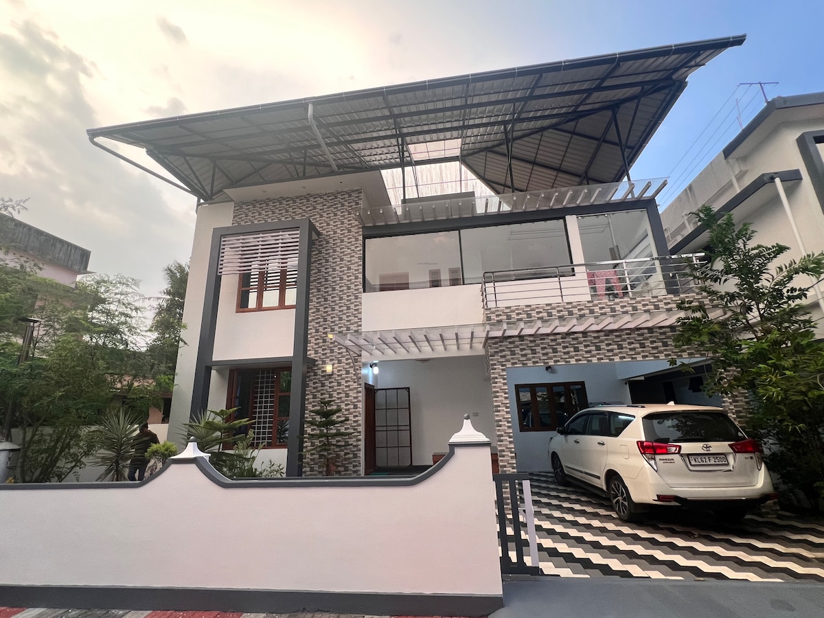 Experience true comfort at Karthika residency, a luxury home in Parakkadavu, 20 minutes from Airport and Angamaly Railway Station. Ideal for large groups, featuring 4 spacious AC bedrooms with king-size beds and attached bathrooms for 8 adults. Enjoy premium interiors, a spacious yard with seating, easy river access and more. Wi-Fi, Smart TV, power backup, parking, and more amenities.. Easy food delivery locally or through apps. Smoking indoors and pets not allowed. Self check-in process.
