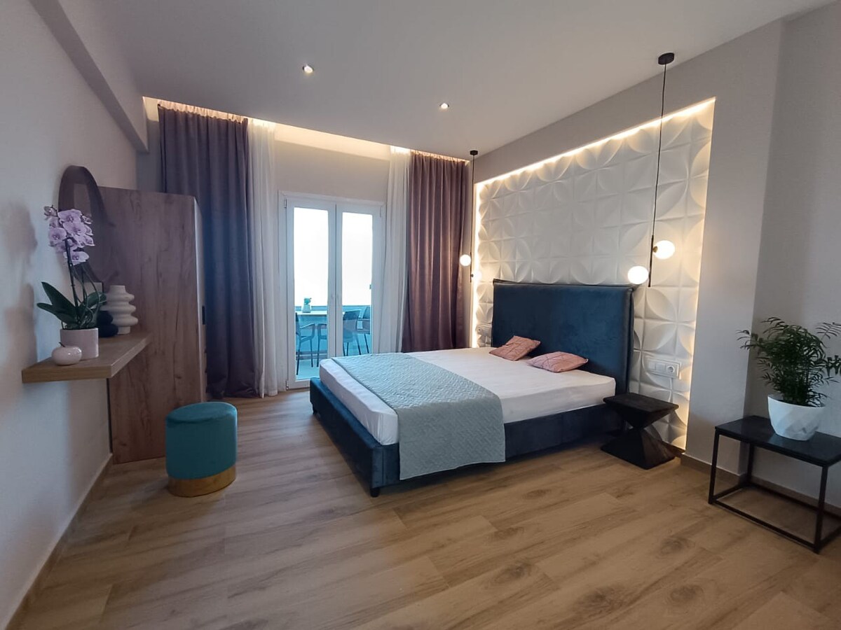 Rita's Home is brand new, tastefully furnished, 53m² , upper-floor apartment for 5 person. Only 50 meters from Acharavi's sandy and pebbly beach, where you'll find restaurants, bars, and also sunbeds are available. Ideal for 4 adults or 4 adults and 2 children. The apartment has 2 separate bedrooms, 2 bathrooms, and a living room with a large sofa that opens into a double bed (150*200). Comfortable, high-quality mattresses. Well-equipped kitchen. Air conditioning in every room
