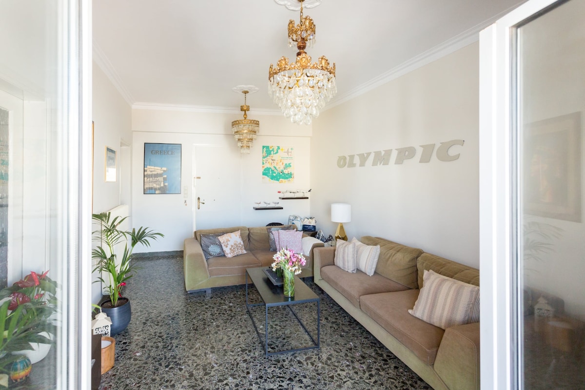 Is árasán fairsing agus athchóirithe go hiomlán é an spás 80 méadar cearnach seo le béim ar gach mionsonra. Tá sé suite i gcomharsanacht chiúin ach ag an am céanna níl sé ach 1.7 ciliméadar ó lár na cathrach. Tá trá Nea Chora 1.2 km ar shiúl. Tá an t - árasán 10 nóiméad siúil ón stad bus agus 5 nóiméad ón ollmhargadh agus ón gcógaslann. Is féidir le haíonna páirceáil díreach lasmuigh de bhealach isteach sráide príobháideach an árasáin.
