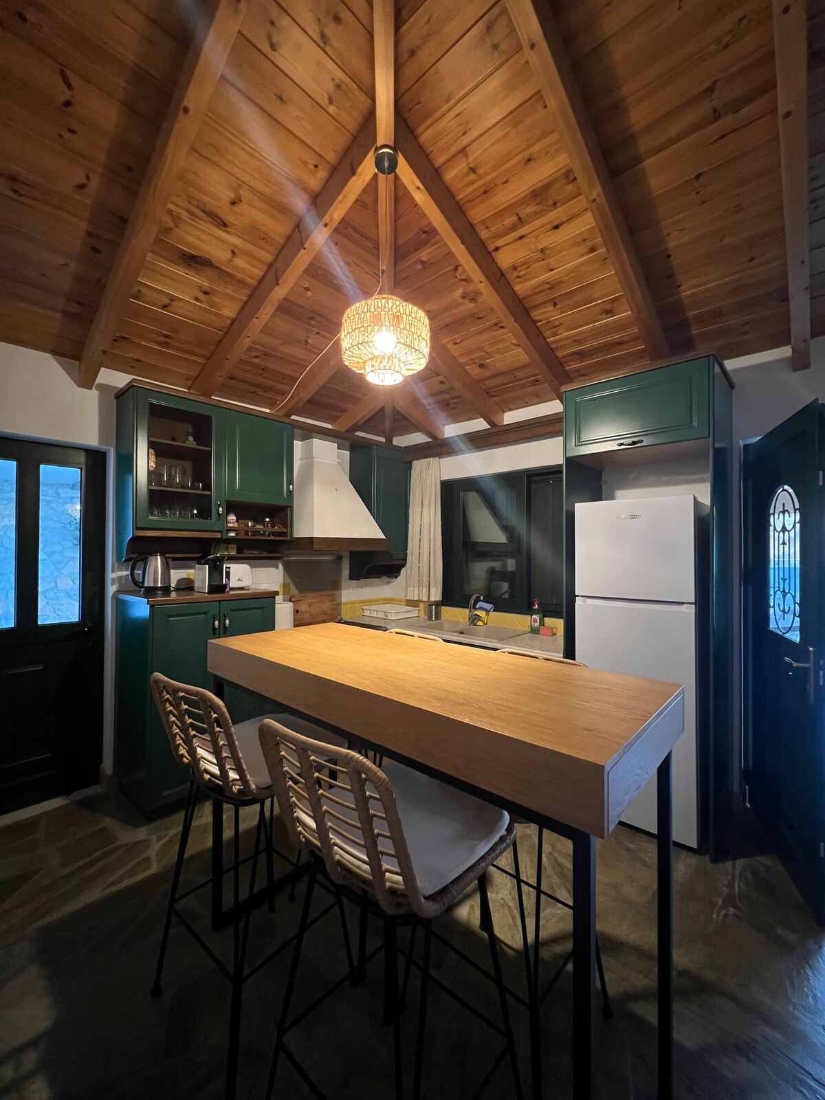 Teach cloiche atá tógtha go hálainn agus a bhreathnaíonn amach ar chalafort beag gleoite Kamini agus radharc 180 céim ar fharraige Argosaronikos. Má fhanann tú anseo beidh tú ag ithe do bhricfeasta Gréagach ar an ardán a bhfuil cloch pábháilte ann ag baint taitnimh as an radharc mara is iontaí ar an oileán, chomh maith le bheith ag súil le ham manglaim chun taitneamh a bhaint as an luí na gréine is iontaí. Bothán suaimhneach chun do scíth a ligean go soiléir agus taitneamh a bhaint as an áilleacht agus an draíocht atá le tairiscint ag Hydra duit...