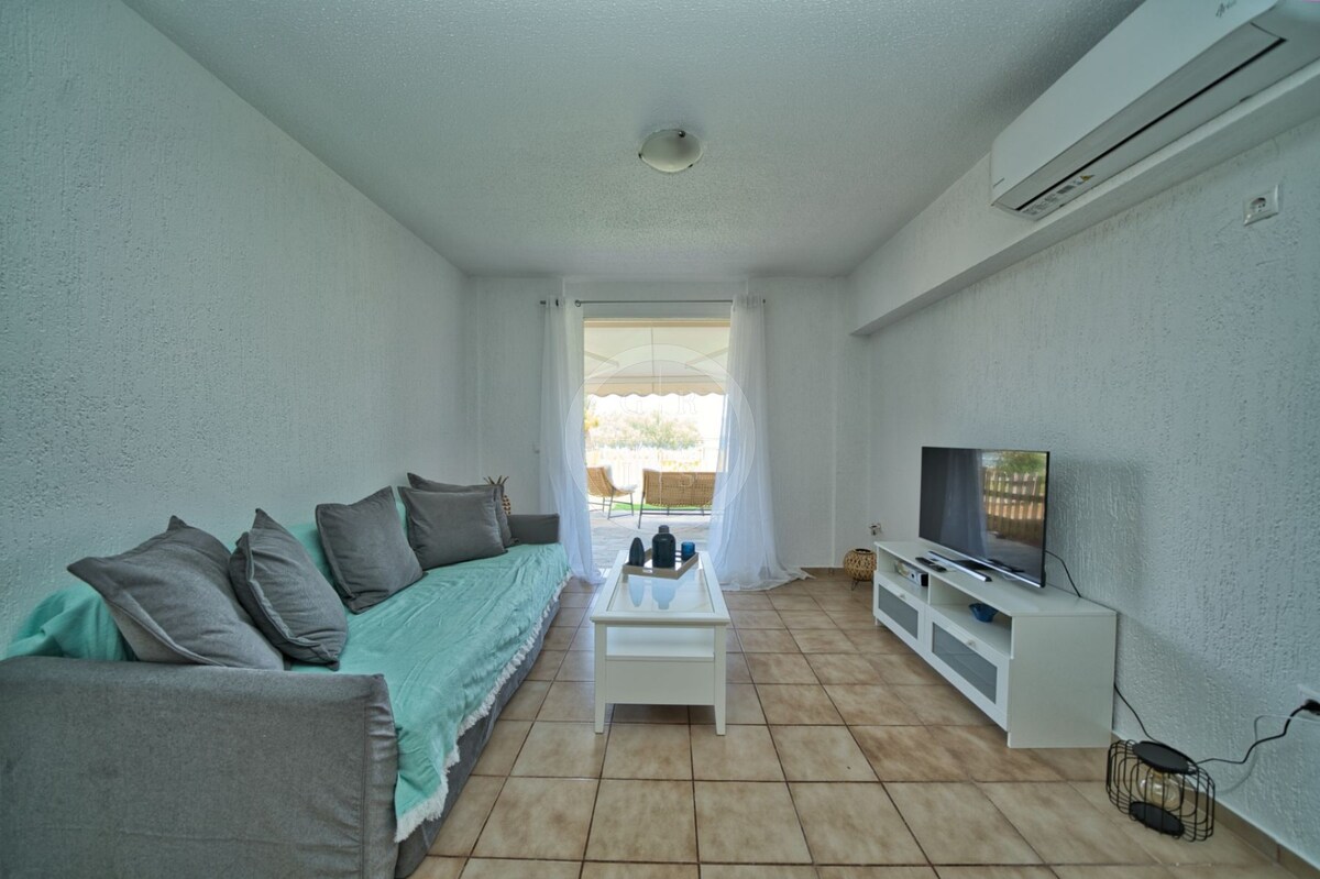 Quiet and peaceful.Brand new apartment with panoramic view .The sunrise and the sunset from the large terrace will enchant you,but also the nights with the moon illuminating the sea are beautiful.The view is also visible through the house.Is a hospitable place specially designed with a lot of love for visitors who want to relax and enjoy the beauties of the island.It will my pleasure to host you .Very quiet neighborhood near the center of the island and near the sea.